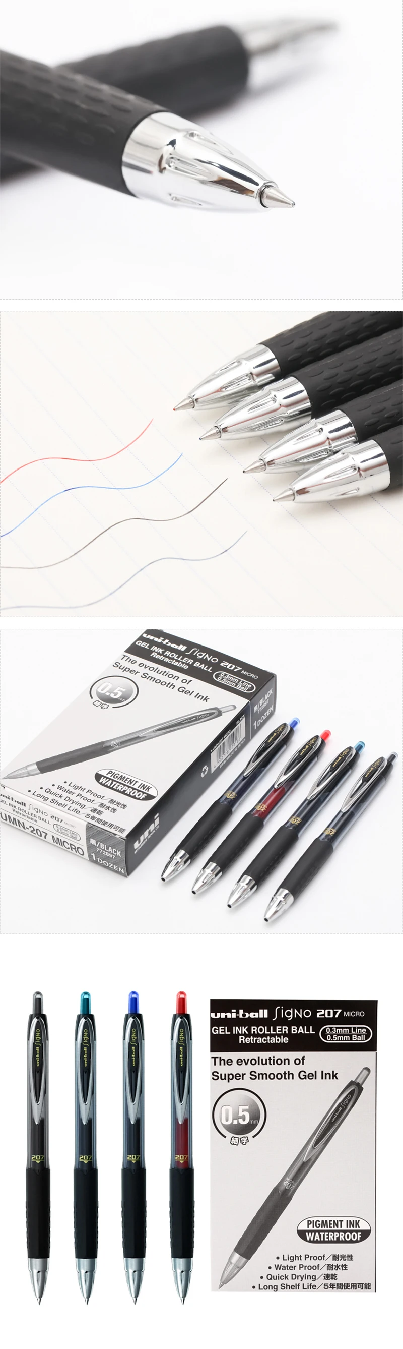 1 шт. UNI-Ball, выдвижная гелевая чернильная Ручка-роллер Signo 207, 0,5 мм, Япония, черный цвет