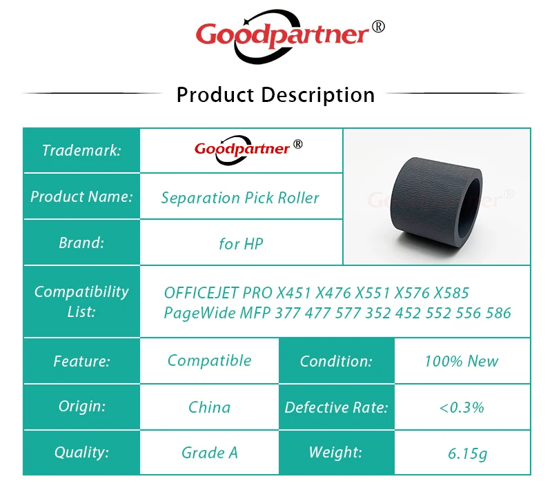 10-дневный разделительный ролик для HP OFFICEJET PRO X451 X476 X551...