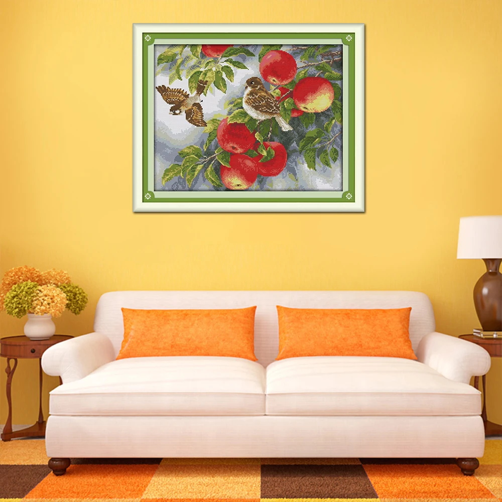 Набор для вышивки крестом Joy Sunday DA086 14CT 11CT, набор для домашнего декора с счетным и штампованным Рисунком Птиц и яблок, сделай сам