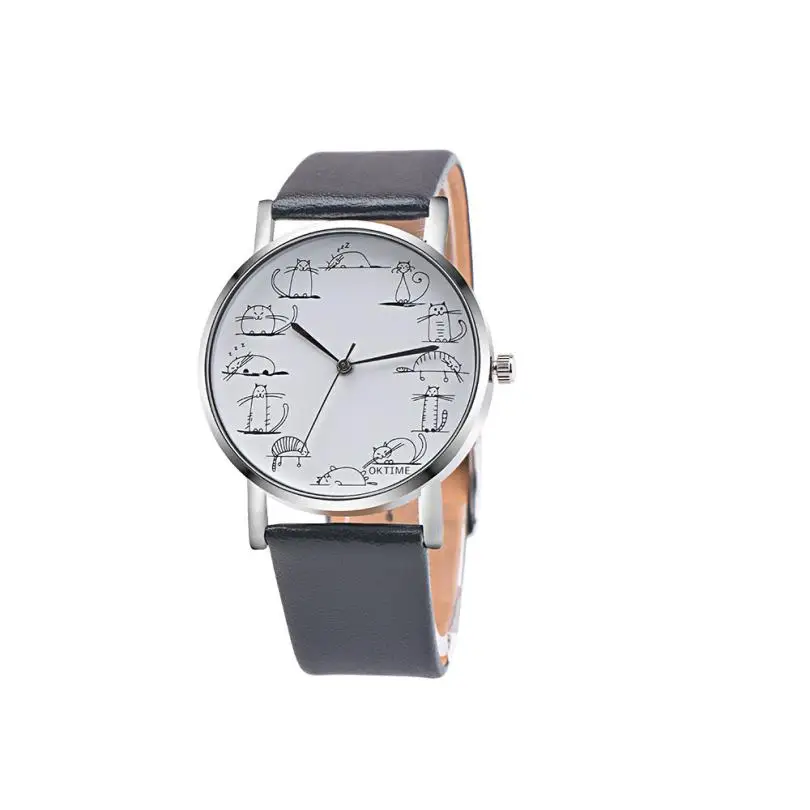 Женские Аналоговые кварцевые часы с изображением кошки из мультфильма