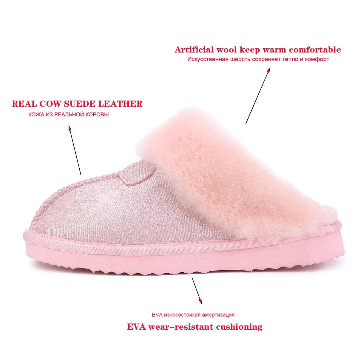 MBR FORCEмодная теплая женская обувь; Тапочки с натуральным мехом; Домашняя обувь; Зимние замшевые тапочки; Женская домашняя обувь; Шерстяные тапочки
