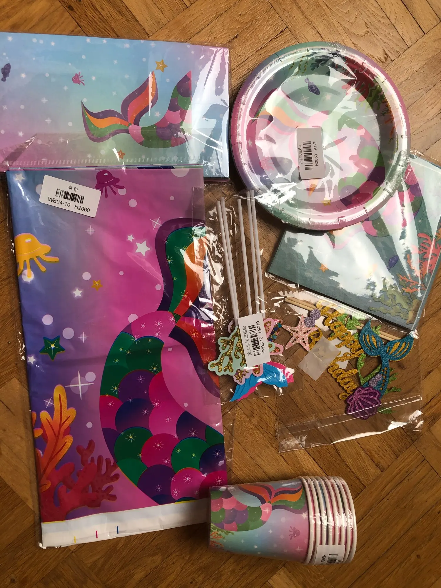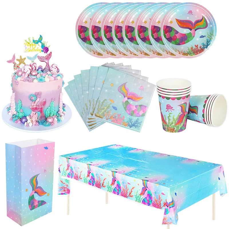 Набор одноразовой посуды русалка, салфетки под чашки шт.