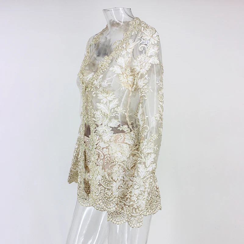Элегантный комплект из двух предметов из прозрачной сетки и кружева с цветочным рисунком из двух предметов, топ и штаны, сексуальный кроп-топ с шортами, 2020