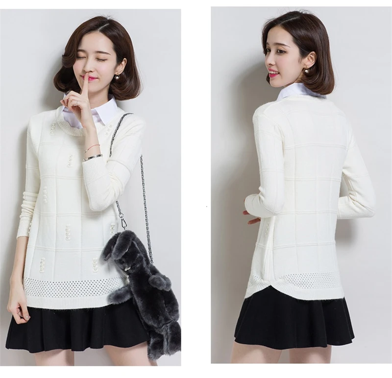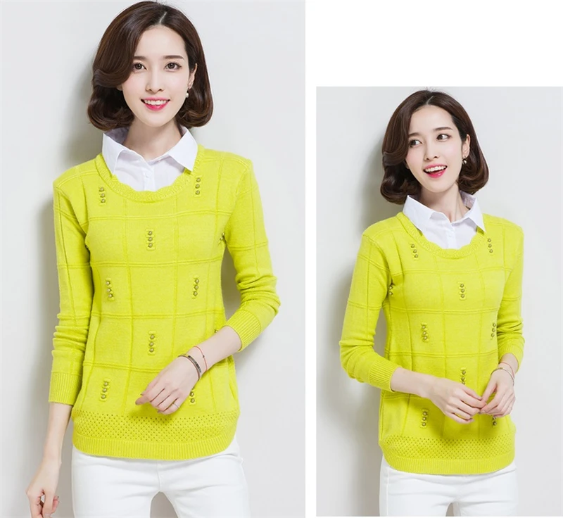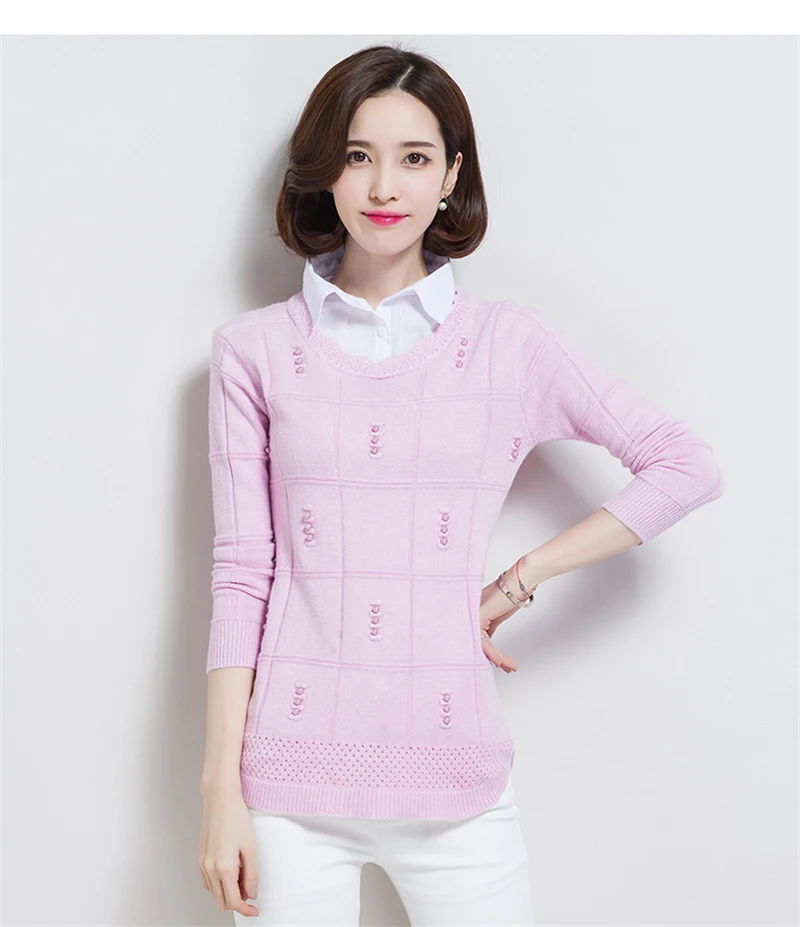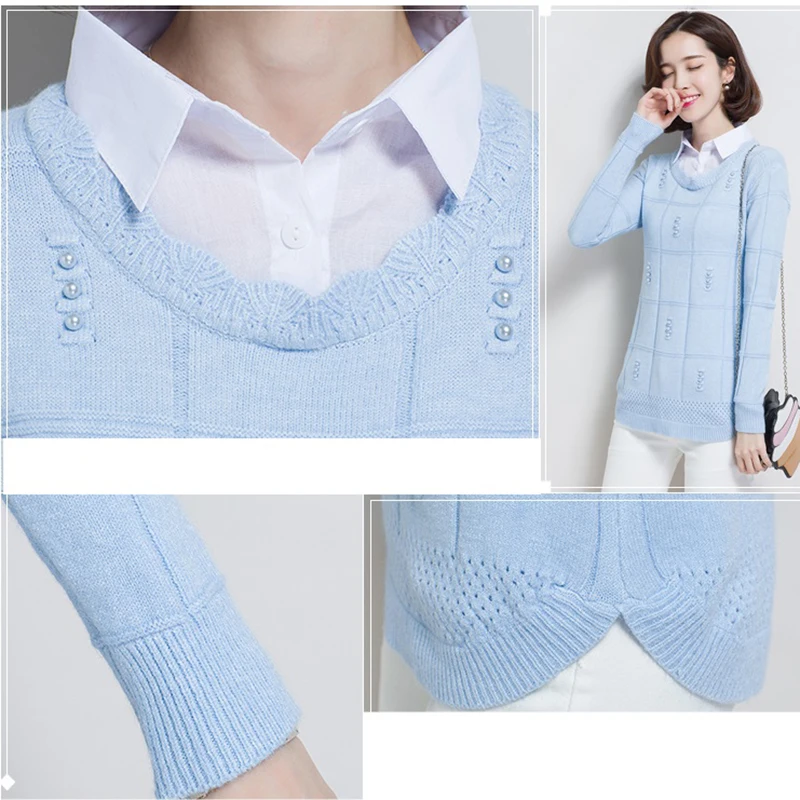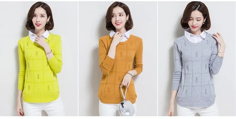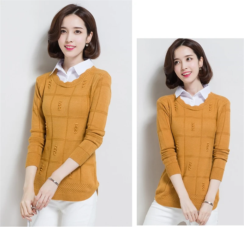 Осенне-зимняя женская одежда, новинка 2020, вязаный пуловер, свитер, Женский рубашечный воротник, женский свитер из двух частей