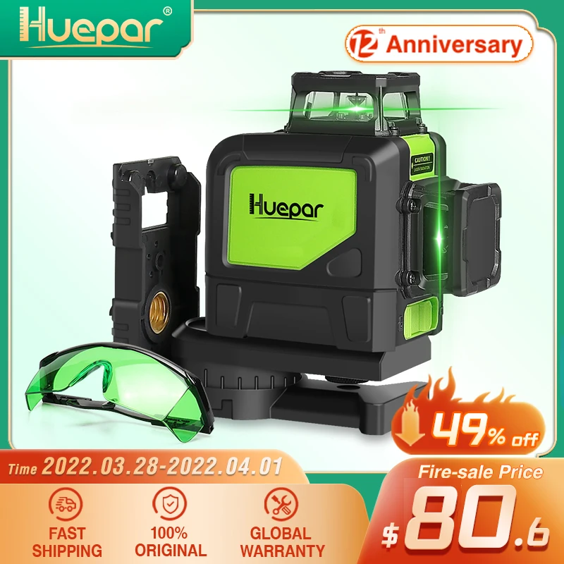 Самонивелирующийся Профессиональный лазер Huepar 360 градусов с зеленым лучом и оптическими аксессуарами