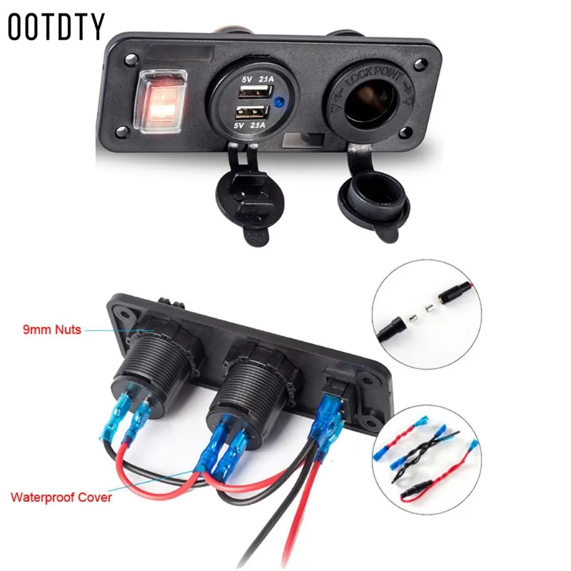 Автомобильный лодочный грузовик, зарядное устройство с двумя USB-портами и разъемом прикуривателя, 12 В постоянного тока, переключатель вкл.выкл.