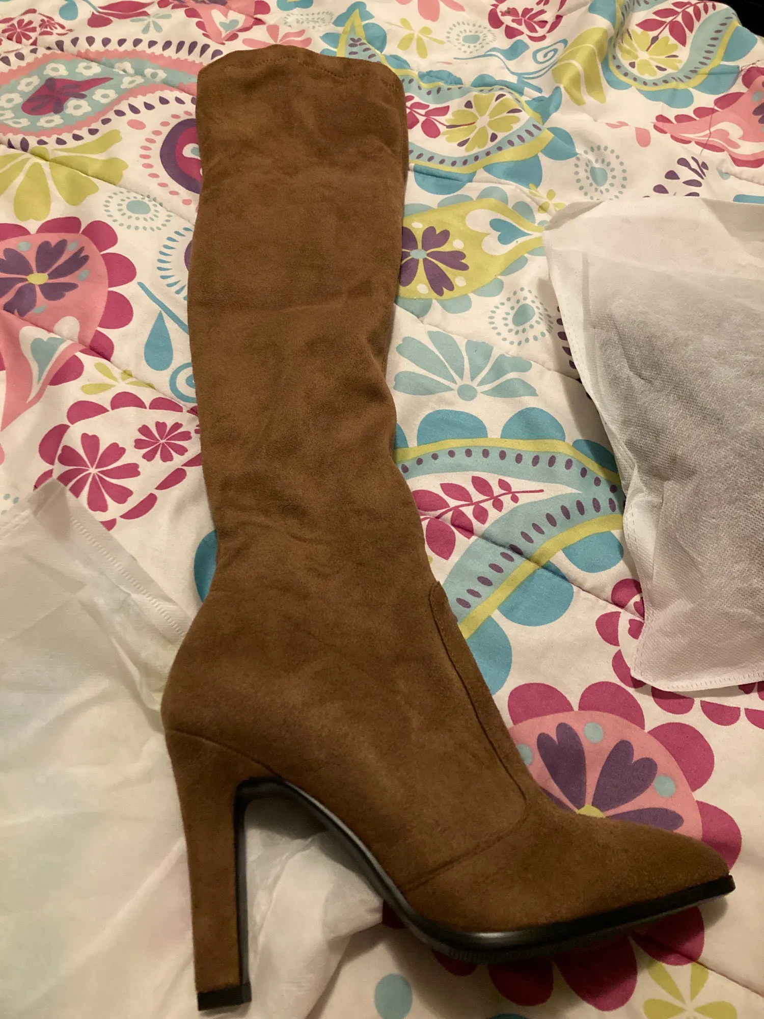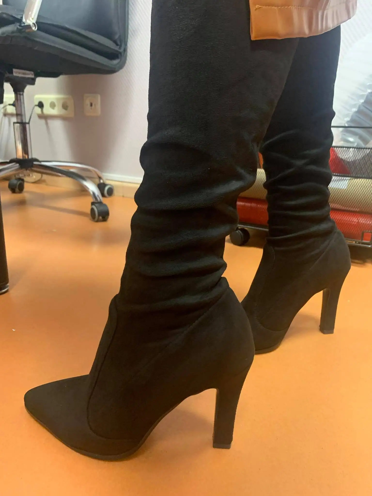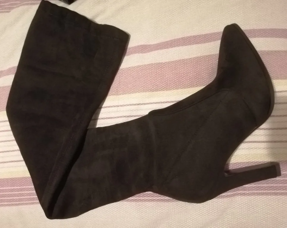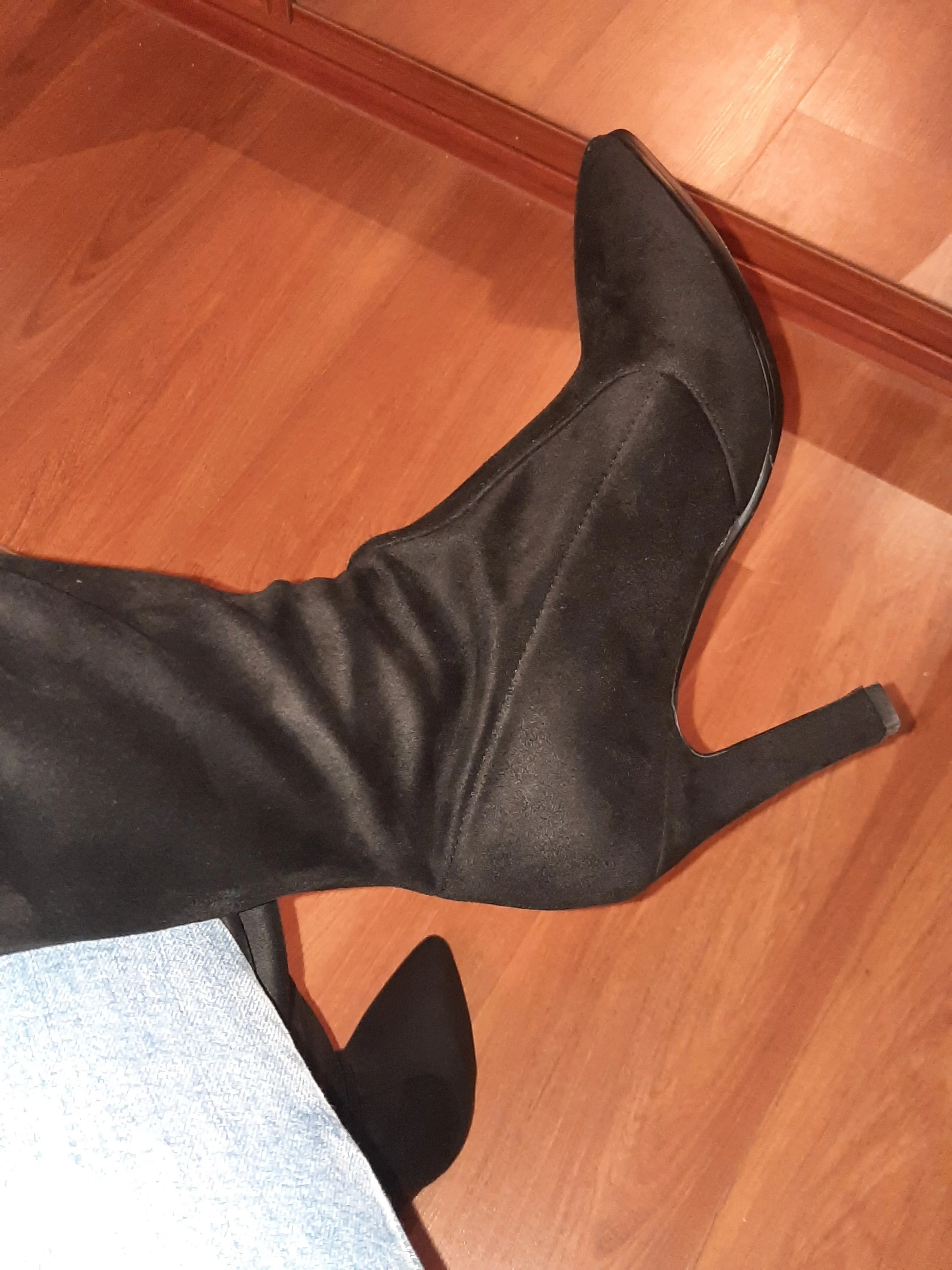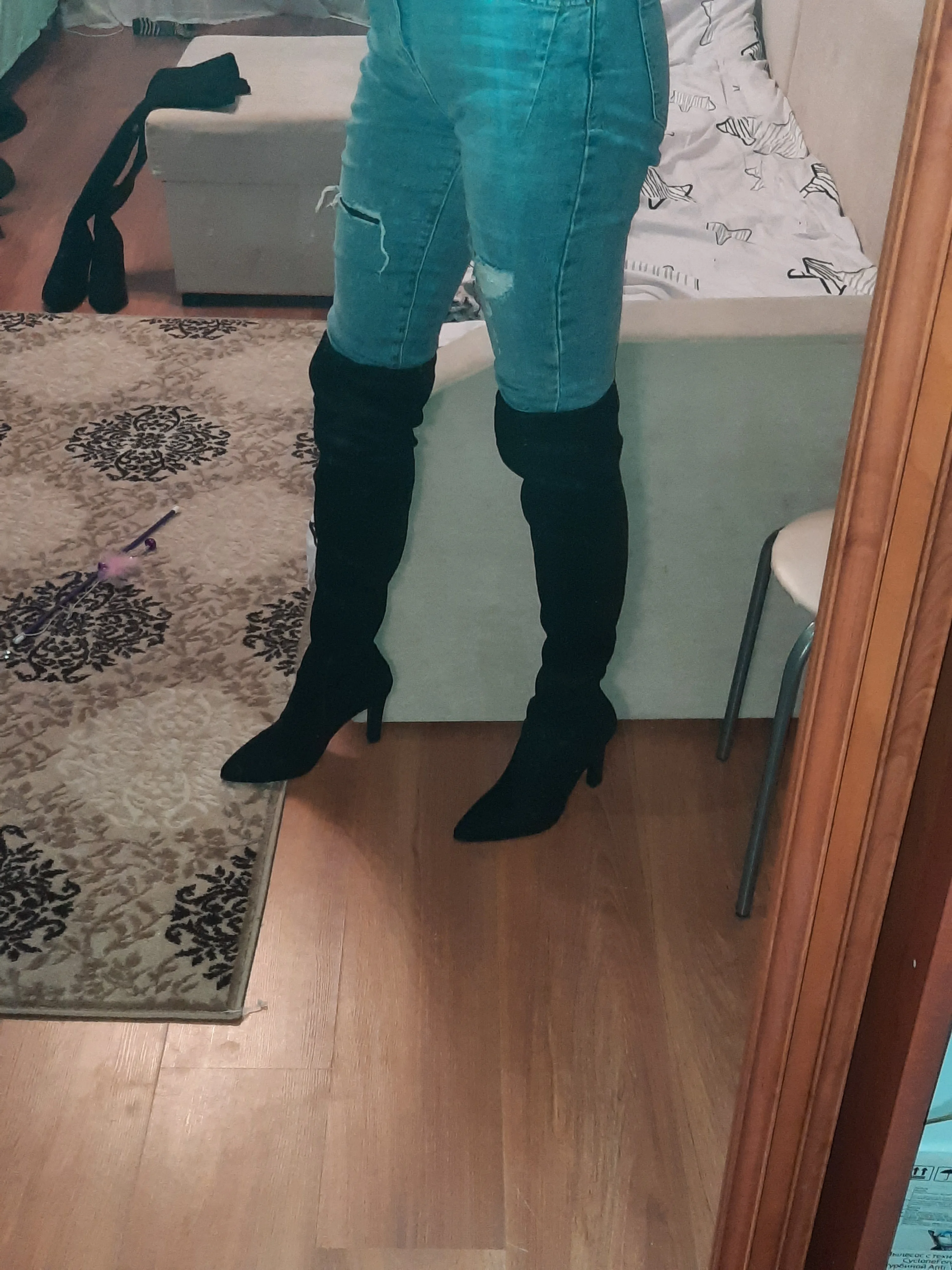 Сапожки на удивление очень хорошо сели. Это моя первая обувь которую заказываю через интернет так как сама работаю в обувном магазине. На удивление колодка хорошо подошла, каблук для меня не слишком высокий, удобно ходить так как не шпилька, стелька мягкая. Сами ботфорты как гетры, тоесть нет молнии.