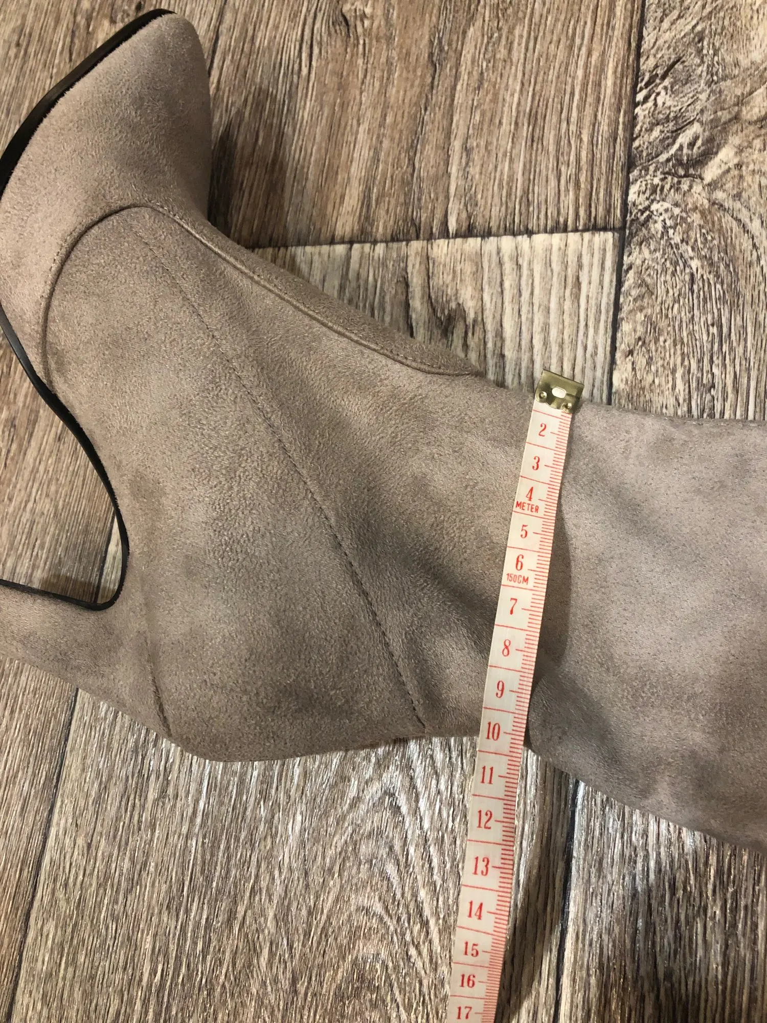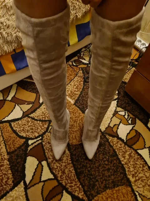 Супер ботфорты, качество отличное, на ноге сидят идеально, рост 1,60 длина чуть выше колена, взяла на размер больше, немного свободные в ступне, можно брать размер в размер