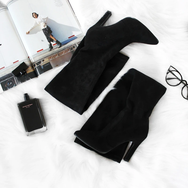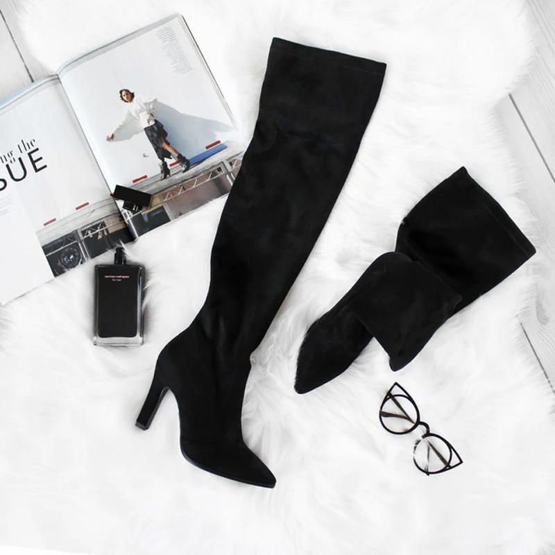 QUTAA2021 г. Женские Сапоги выше колена зимняя обувь без шнуровки Универсальные женские сапоги на тонком высоком каблуке с острым носком размеры 34-43