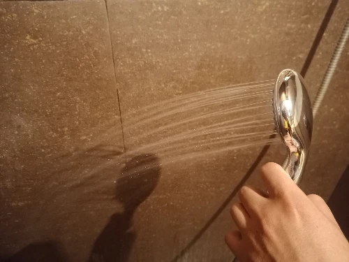 Хромированная насадка для душа серебристого цвета с функцией распыл...