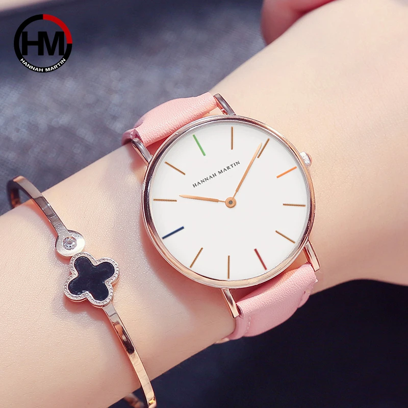 Японские кварцевые часы модные повседневные женские розовые кожаные водонепроницаемые наручные часы erkek kol saati с оригинальной подарочной коробкой