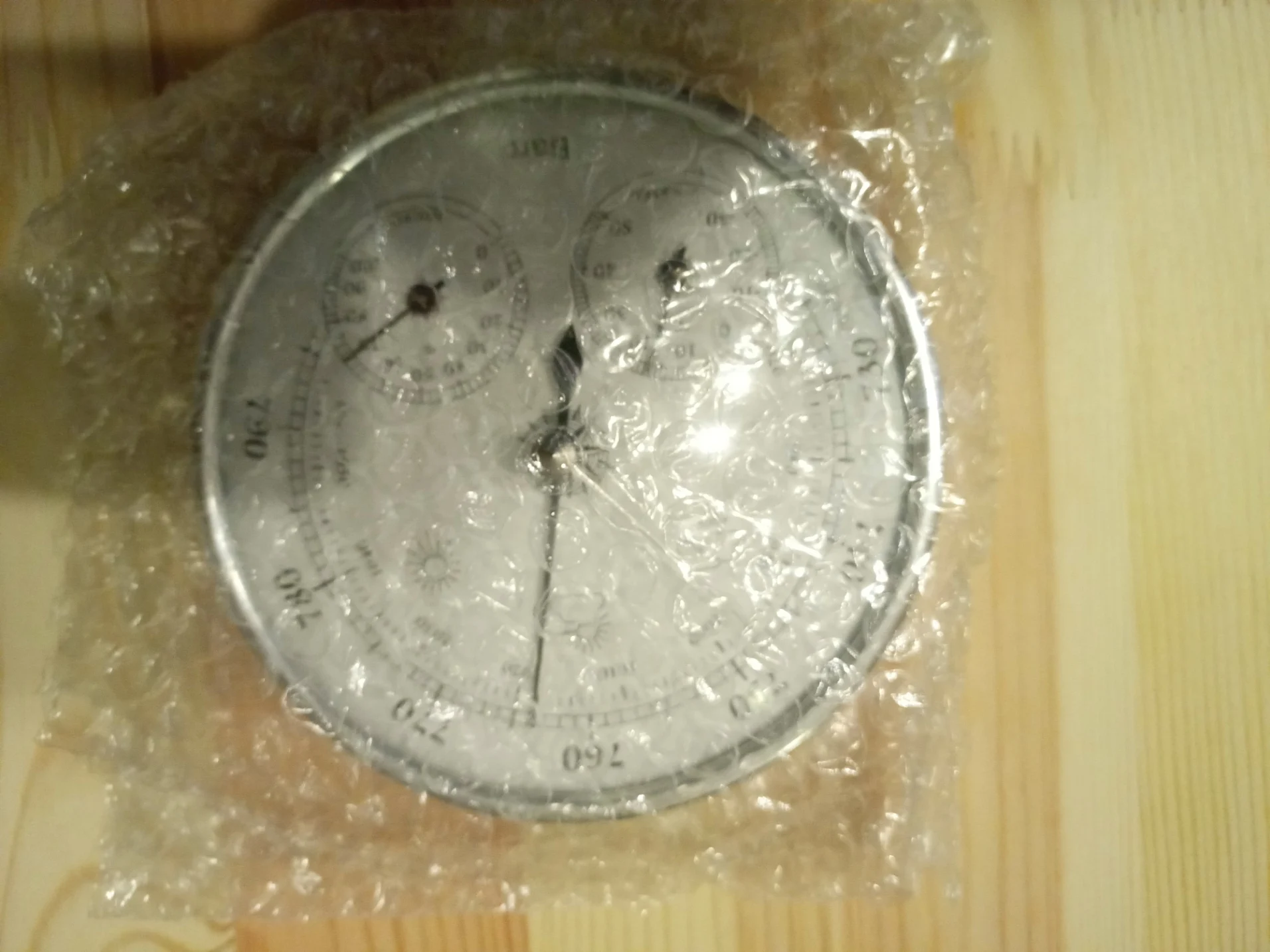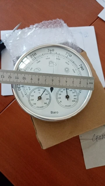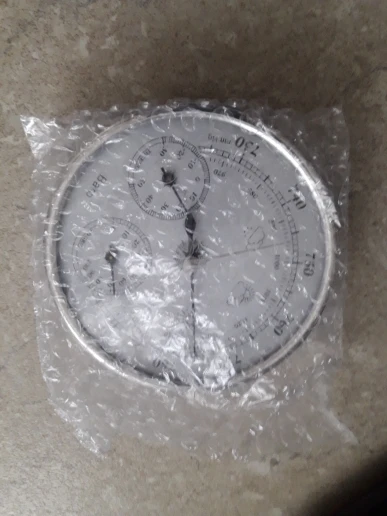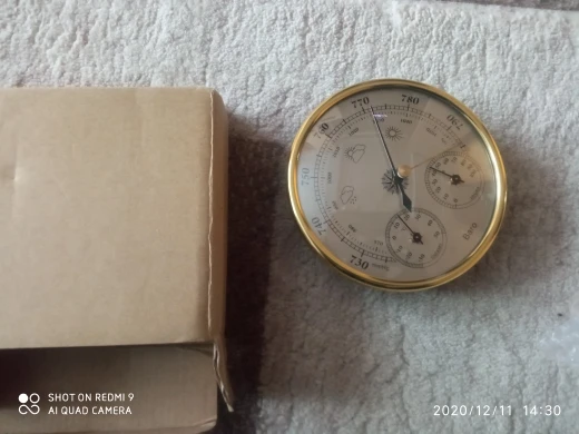 Доставка 35 дней.Ба́рометр пришёл на удивление целым и работающим,был упакован в пупырку и картонную коробку,которая была раздавлена,как только стекло на барометра не пострадало,не знаю,хотя я продавца просил хорошо упаковать товар.