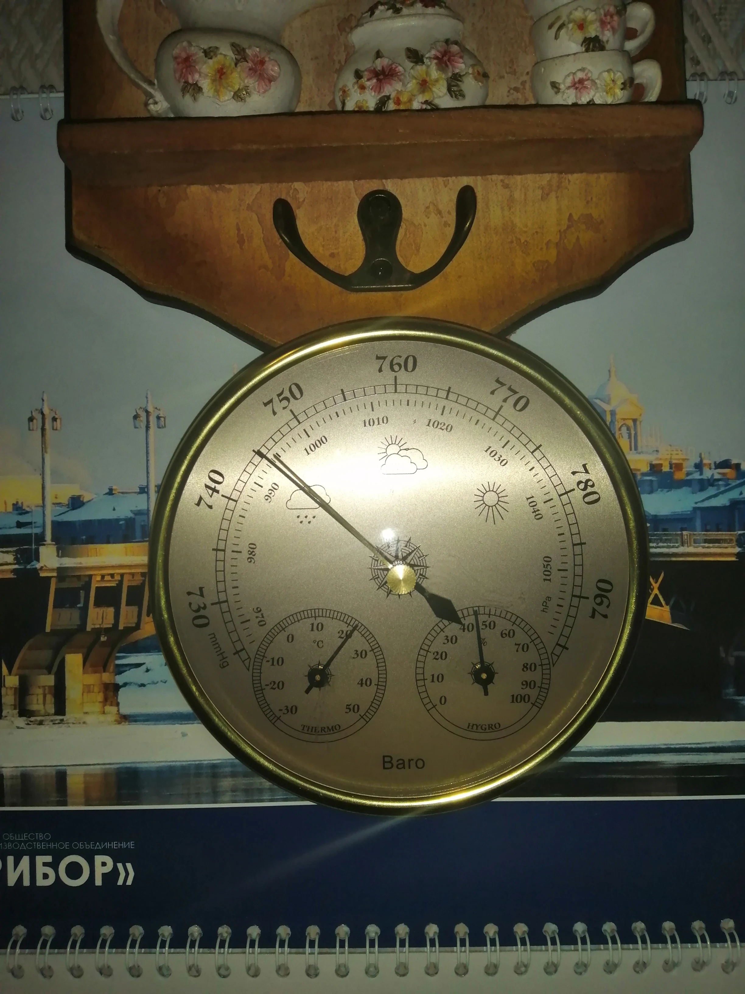 Товар пришел в город последний день защиты покупателя. Но сам барометр показывает правильно по всем параметрам. Красивый, как на картинке. Спасибо.