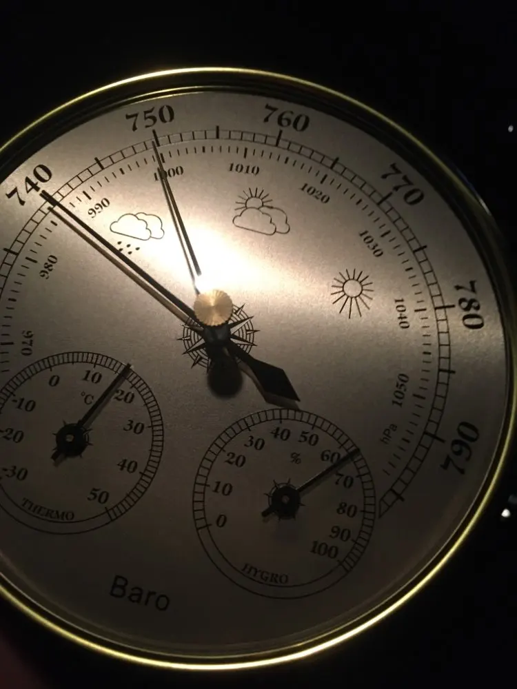 Выглядит хорошо. Гидрометр, кажется, немного выключен (измерение 50% вместо 40%) Часы Garmin измеряют давление на местной высоте 260 М, чтобы быть 743 мм рт. Ст. Считывание давления 745 мм рт. Ст. Откалибровано до 400 м в соответствии с руководством.
