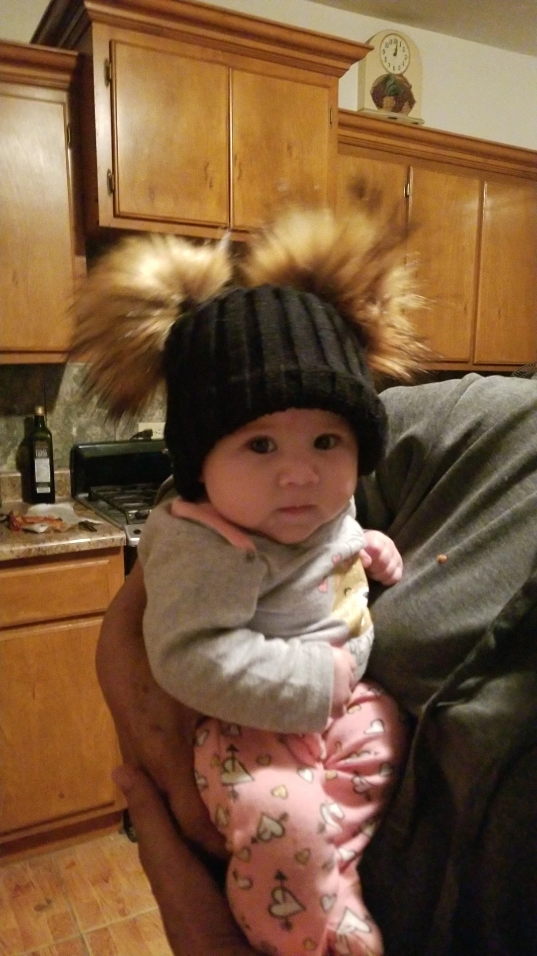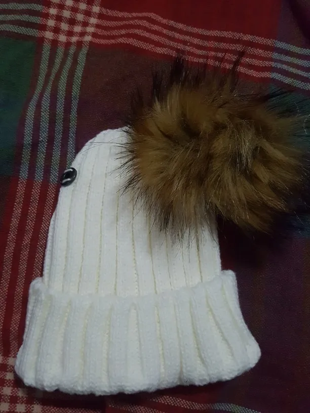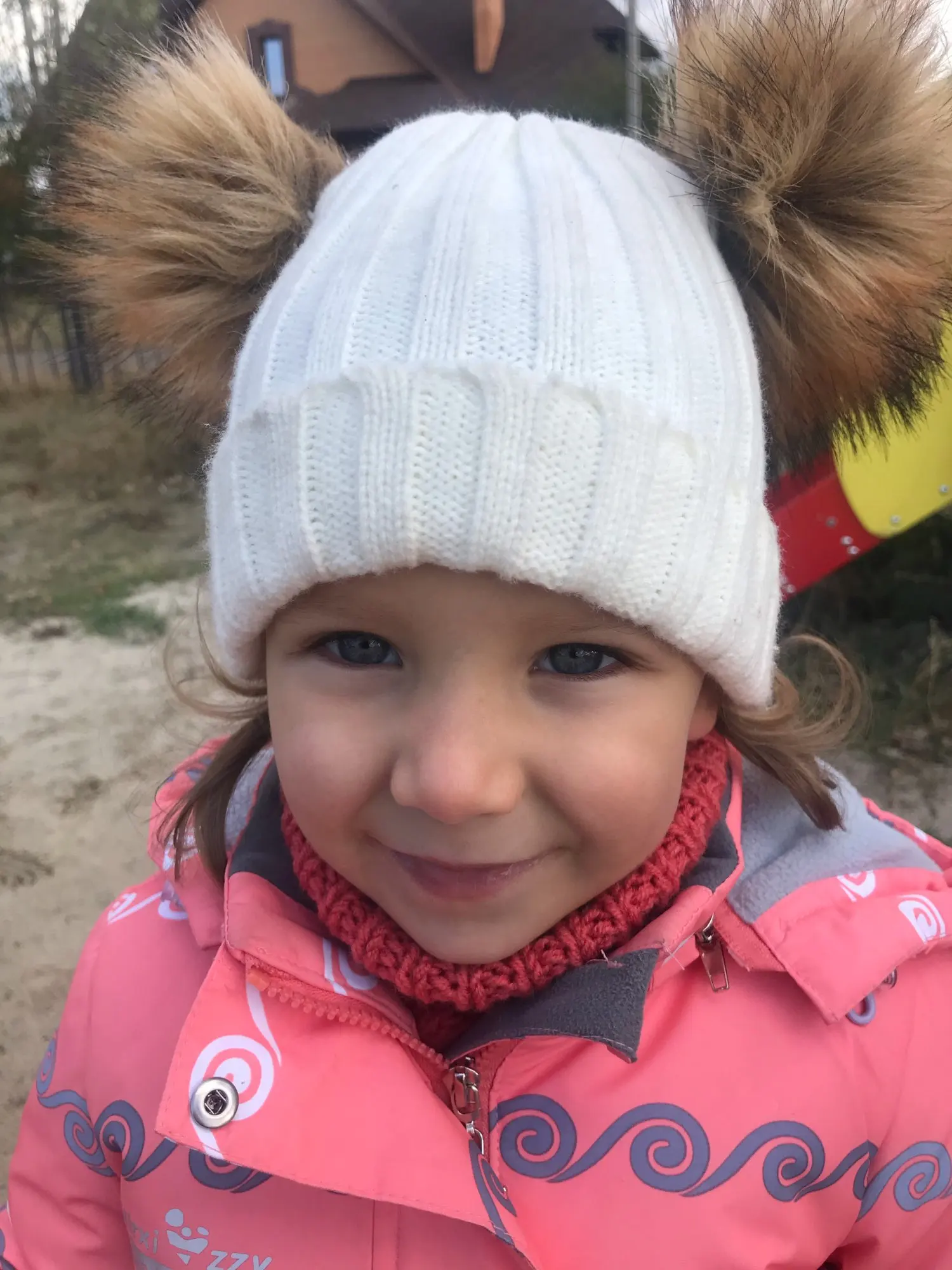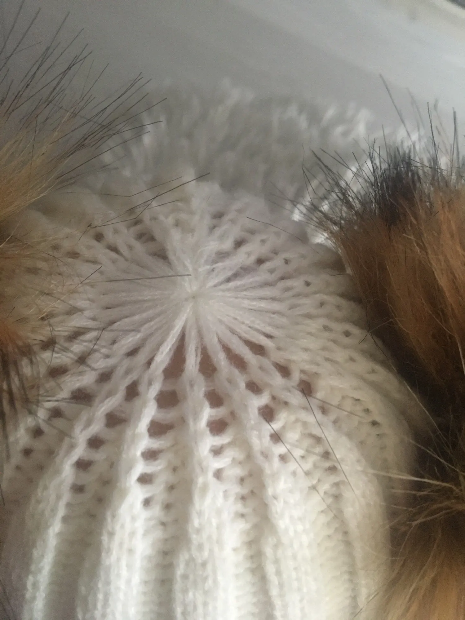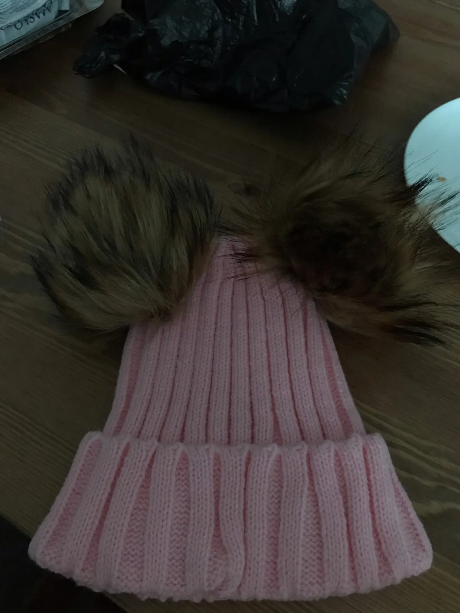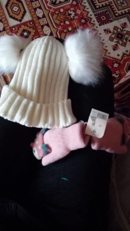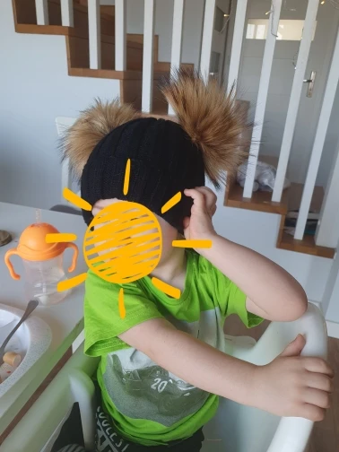 Шапочка понравилась,особенно помпоны ,они клёвые,большой плюс ,что на кнопках и можно перешить на другую шапку.На 2 годика великовата,ушки плотно не прикрывает.Минус этой шапки это вязка вверху,ну ооочень большие дырки,нужно либо вшить внутрь тонкую или просто пододевать .Доставка быстрая