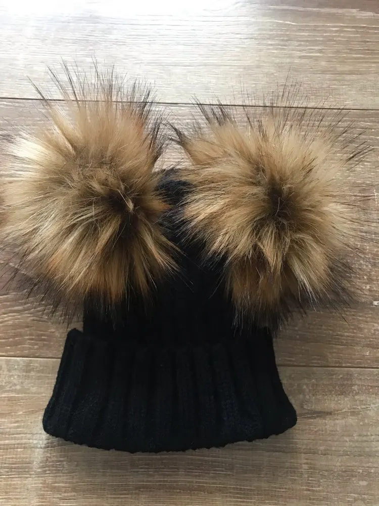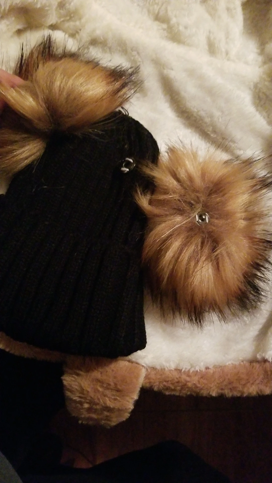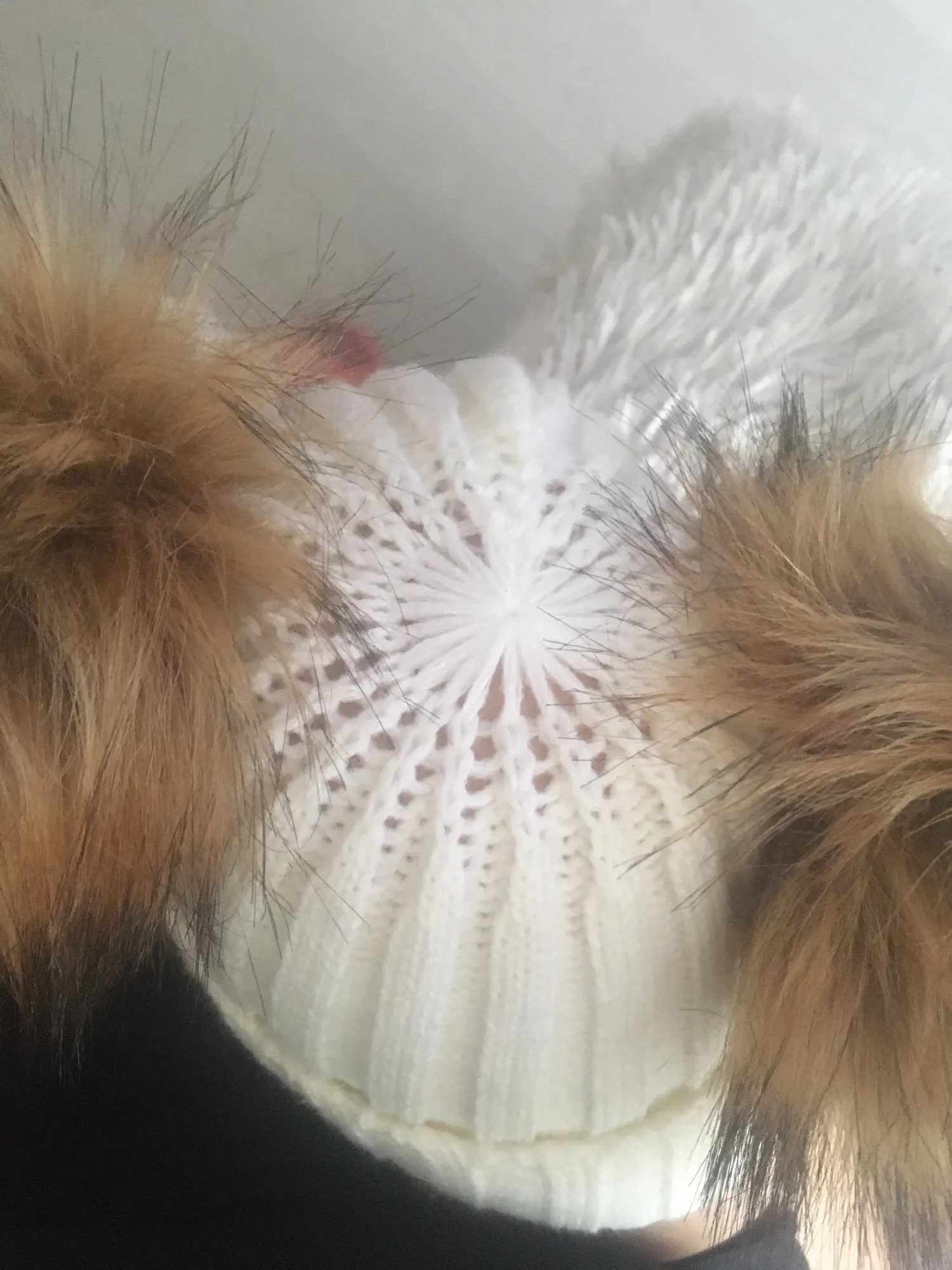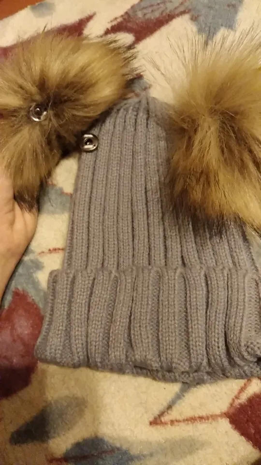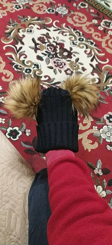Большие помпоны, но внутри нет теплой флисовой подкладки. Все равно хорошо