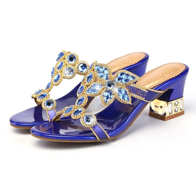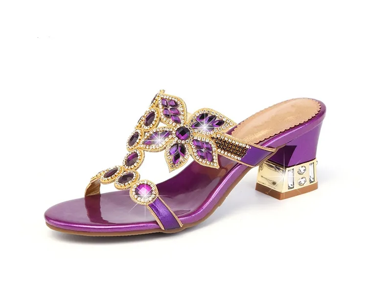 2020 новые летние разноцветные стразы Тапочки на квадратном каблуке женские модные пляжные шлепанцы с кристаллами сандалии для отдыха D0038