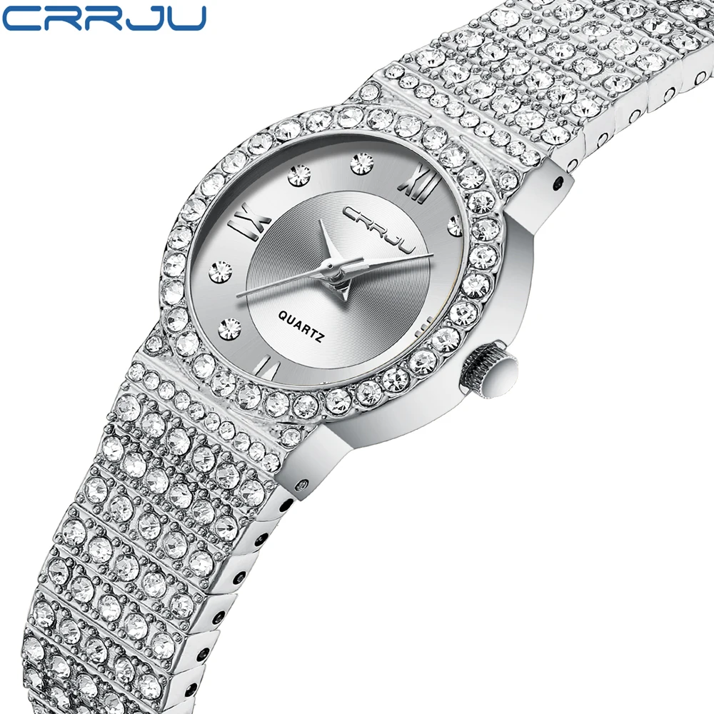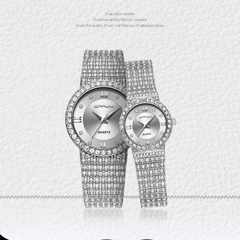 CRRJU Роскошные брендовые Модные женские и мужские ювелирные изделия браслет Стразы Часы для влюбленных Дамские Кварцевые наручные часы для пары в подарок relogio