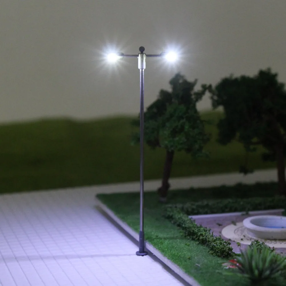LQS11 10 шт., модельная лампа для жд поездов, уличное освещение с двумя головками, новые белыетеплые белые светодиоды