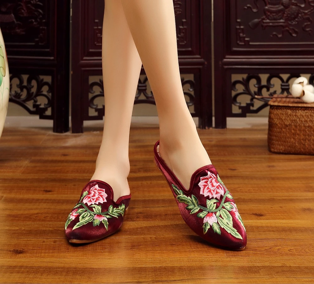 Мюли Veowalk женские с цветочной вышивкой, фланелевые хлопковые тапочки, закрытый заостренный носок, всесезонные, для отдыха