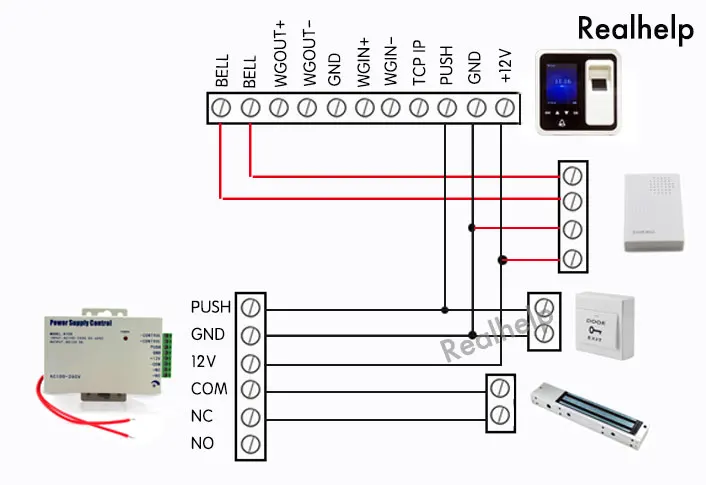 Электрический замок, датчик двери, кнопка выхода, дверной звонок