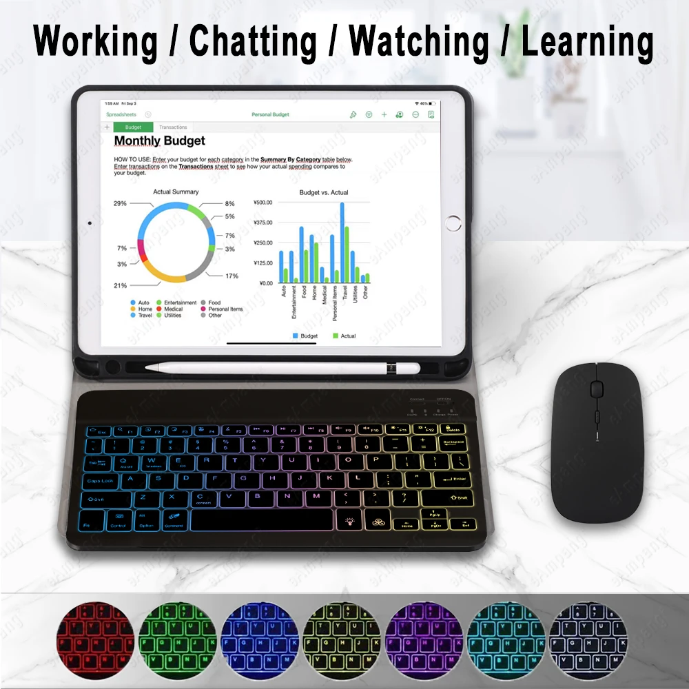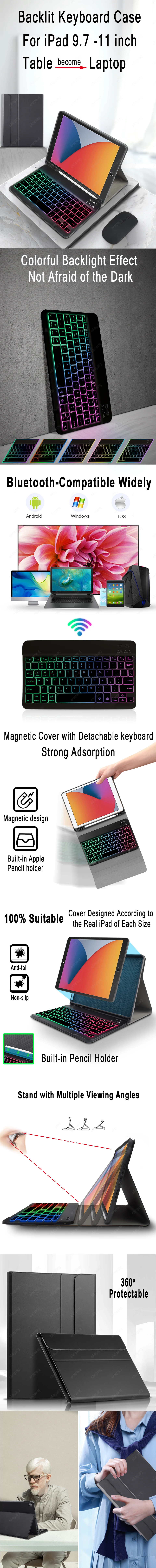 Чехол-клавиатура для iPad 10,2, iPad 9, 8, 7, 6, 5, 9,7 Pro 11, 2021, 2020, 2018, Air 4, 10,9, Air 2, 3, 10,5, с подсветкой