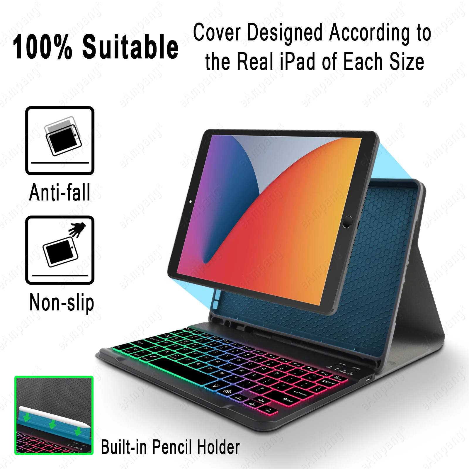 Клавиатура работает хорошо, но чехол не совместим с iPad Pro и качество материала не очень хорошее.