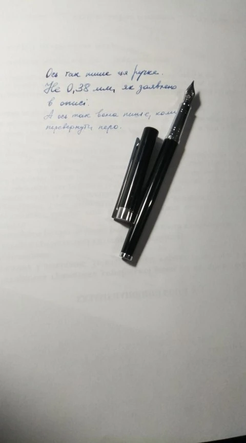 Отличная ручка. Размер пера пра́вда вместо 0,38 пришел 0,5. Но мне оно очень понравилось. Доволен 100%!!!