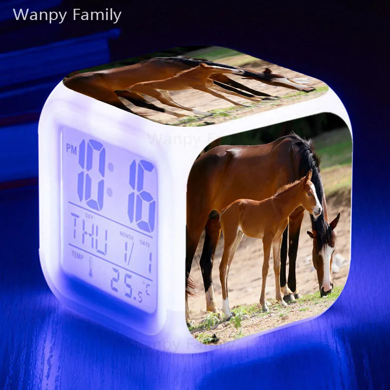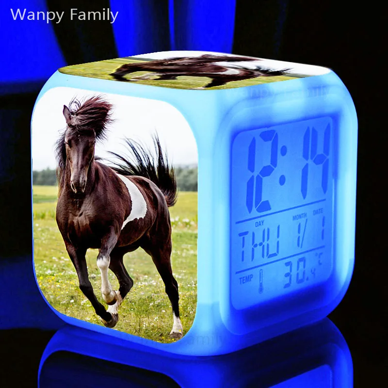 Будильник с изображением лошади, 7 цветов, светящиеся светодиодные ...