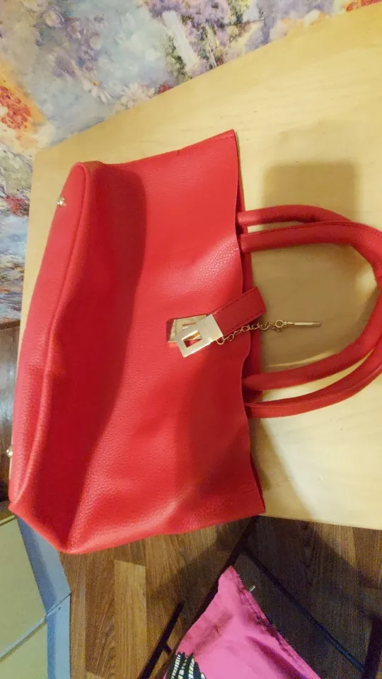 сумка не понравилась. Вся изнанка дермантина видна(из-за отсутствия подкладки). ручки не усилены, выдержат только телефон и кошелек. верх сумки не закладывается как на фото,просто торчит. К продавцу притензий нет.