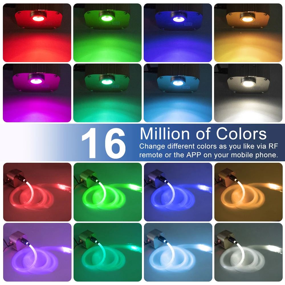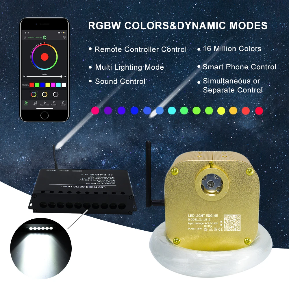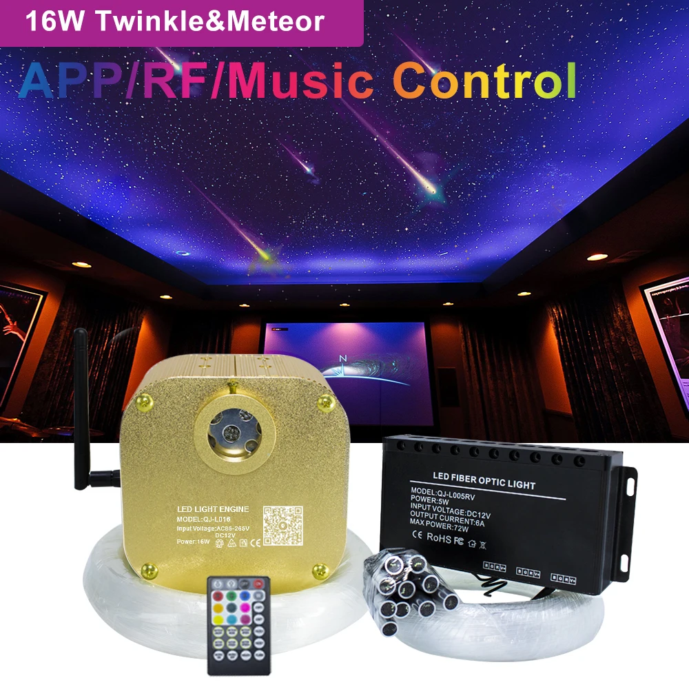 Bluetooth app 16 Вт RGBW Мерцающий СВЕТОДИОДНЫЙ волоконно-оптический Звездный потолочный светильник в комплекте 335430 жил (0,75 + 1,0 + 1,5 мм) 4 м фотография метеоритный эффект