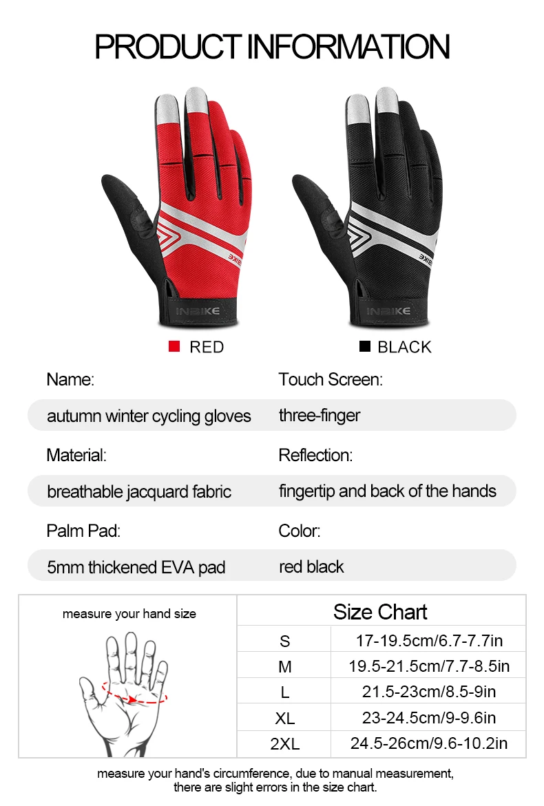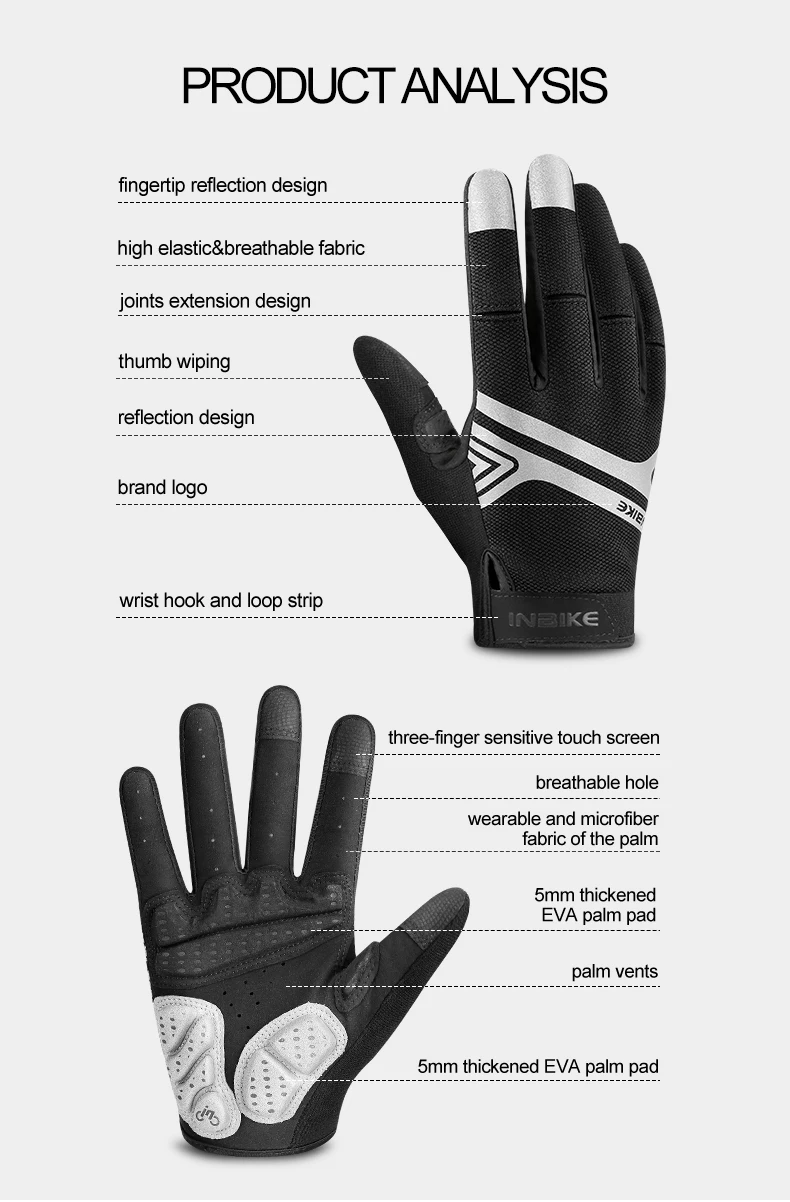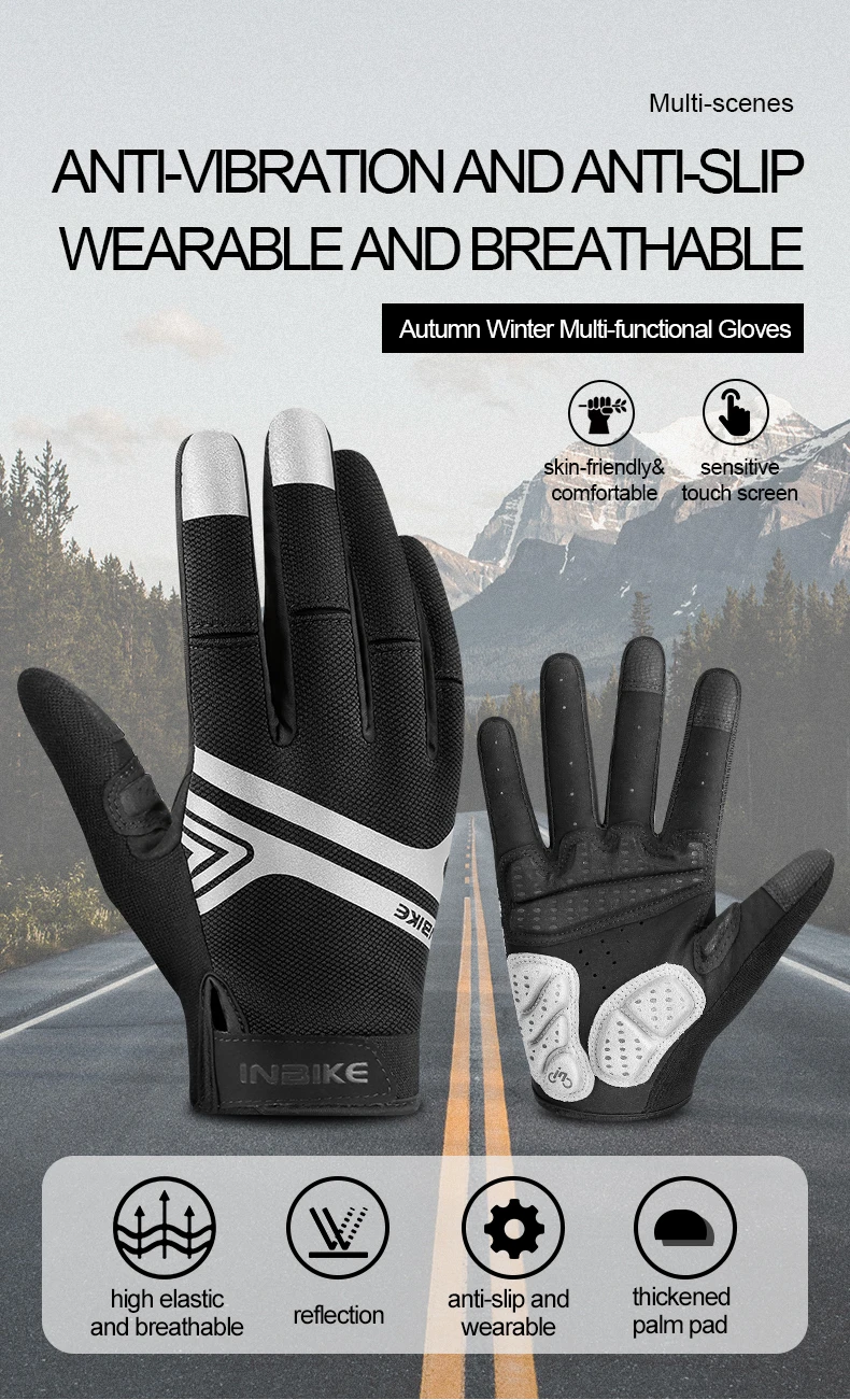Перчатки велосипедные INBIKE, с сенсорным экраном, противоударные, светоотражающие, зимние и весенние