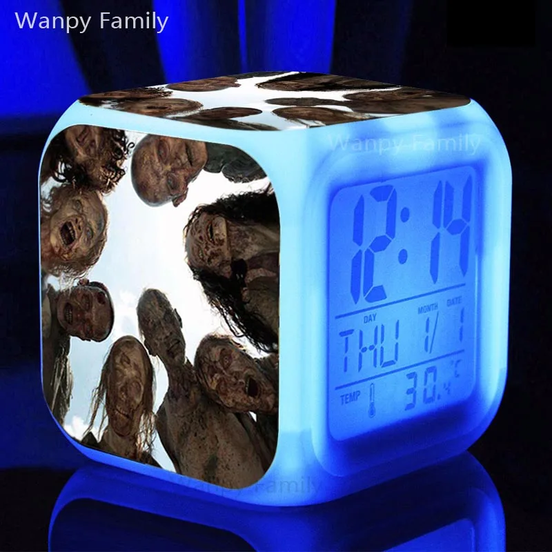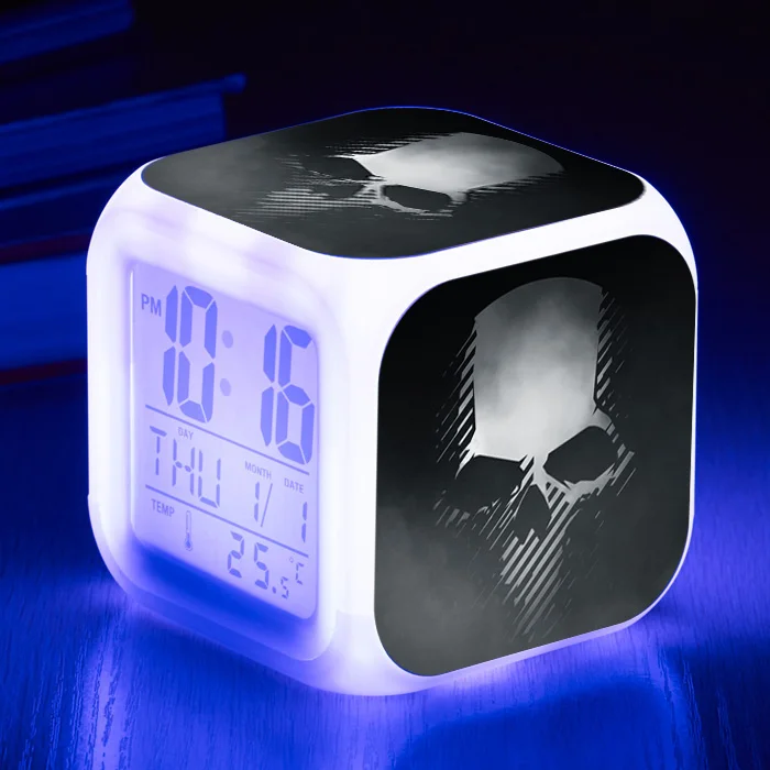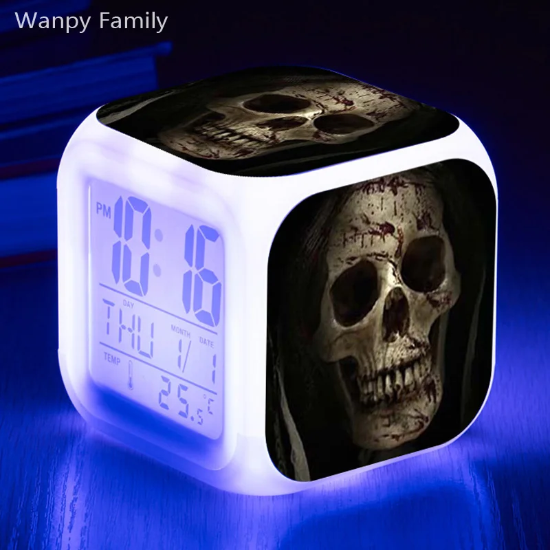 Будильник с призраком ужаса, черепом, 7 меняющих цвет многофункциональных электронных будильников для детей, подарок, настольные цифровые часы