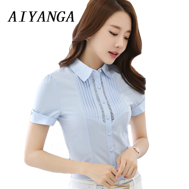 Женская блузка с отложным воротником и коротким рукавом, в Корейском стиле
