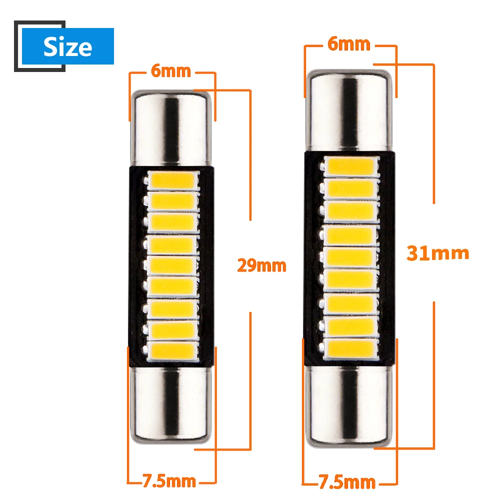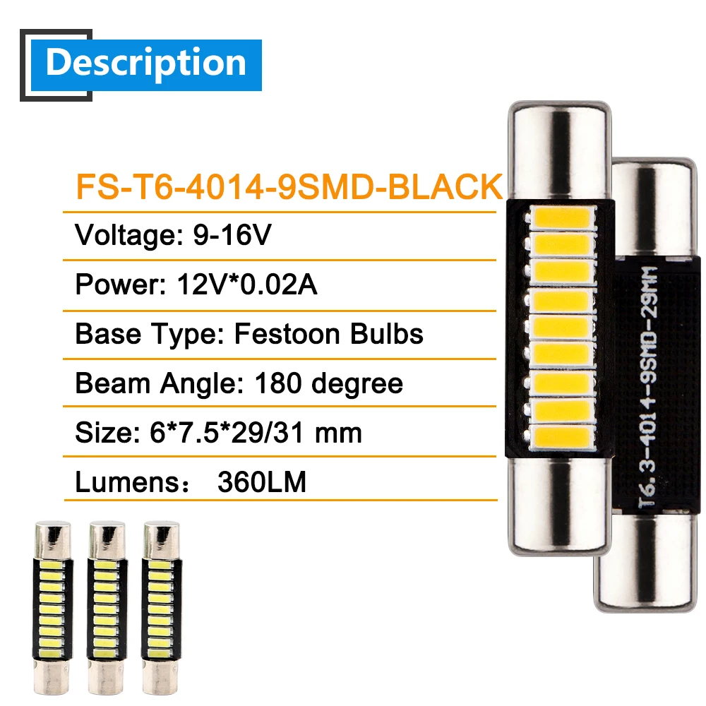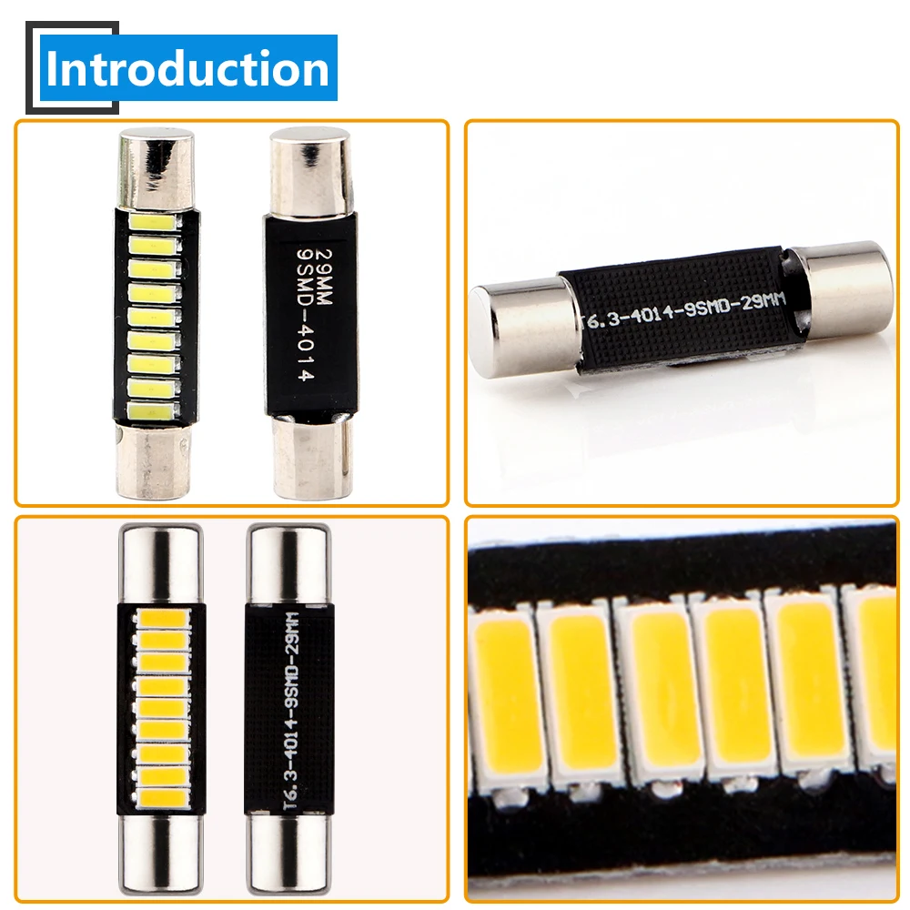 10 шт. 29 мм 31 мм 4014 9 SMD Led DC12V T6 Автомобильный интерьер солнцезащитный козырек для зеркала тёплый белый красный синий зеленый розовый
