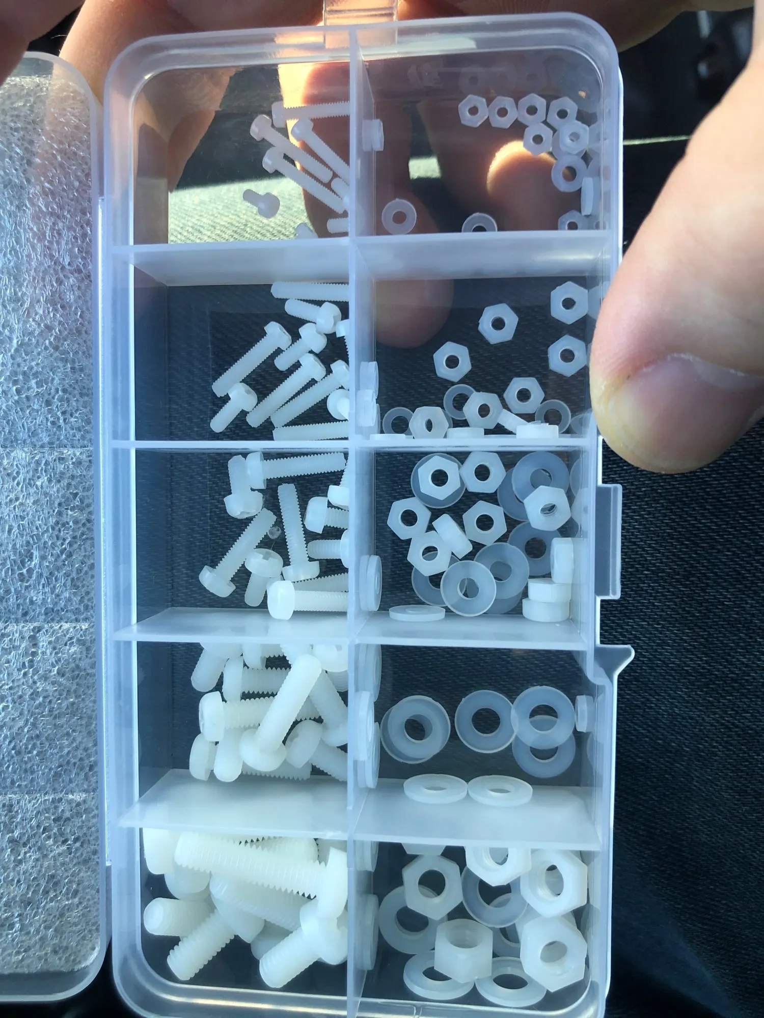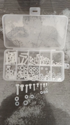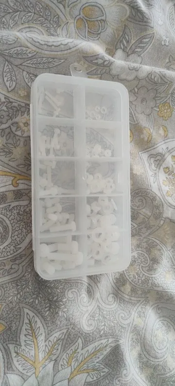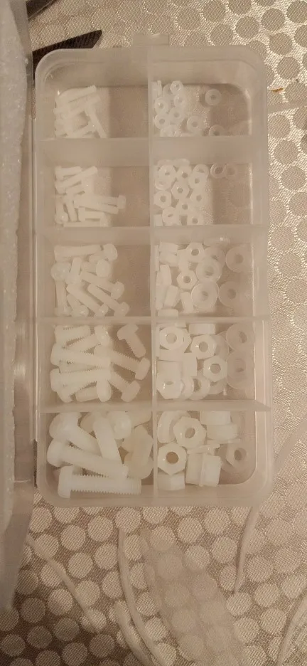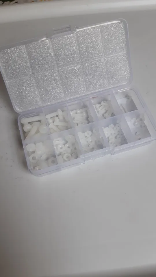 Коробка содержит 5 длинных и 5 коротких болтов и 10 шайб и 10 гаек для каждой из 5 ниток разных размеров в упаковке, в общей сложности 150 штук. Коробка размером с iPhone 4. Хороший набор образцов, но не очень хороший 'сток' этих болтов. Подходит только для одного или двух рабочих мест. Хорошо, чтобы получить идею «подходит для целей» перед заказом большого количества конкретных наборов размеров. Имеет вставку из пены, но некоторые части сделали ее в прилегающие отсеки. 10 минут, чтобы разобраться с ними, это все, что нужно.