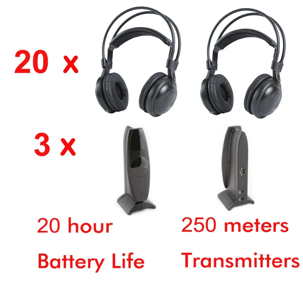 Беспроводные наушники и 3 передатчика, для бесшувечерние, встреч, диджеев, 20 шт.