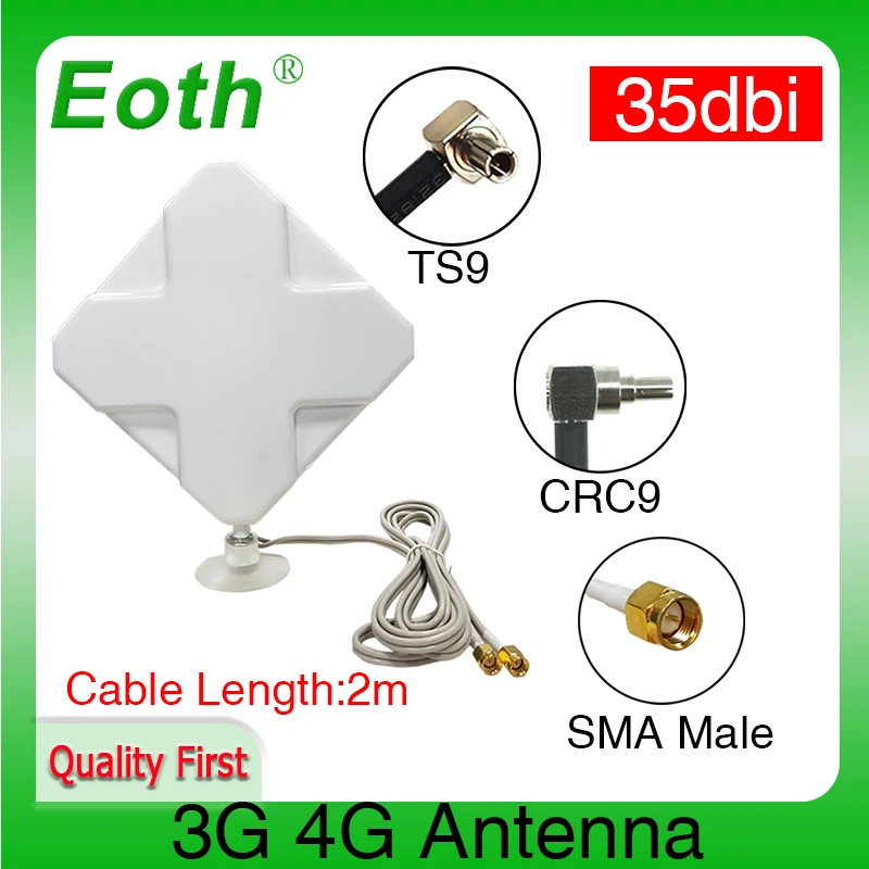 Антенна Eoth 3G, 4G LTE, кабель 35 дБи, штекер SMA, 2 м, разъем SMA для 4G модема, маршрутизатора, адаптера SMA Female на CRC9 Male
