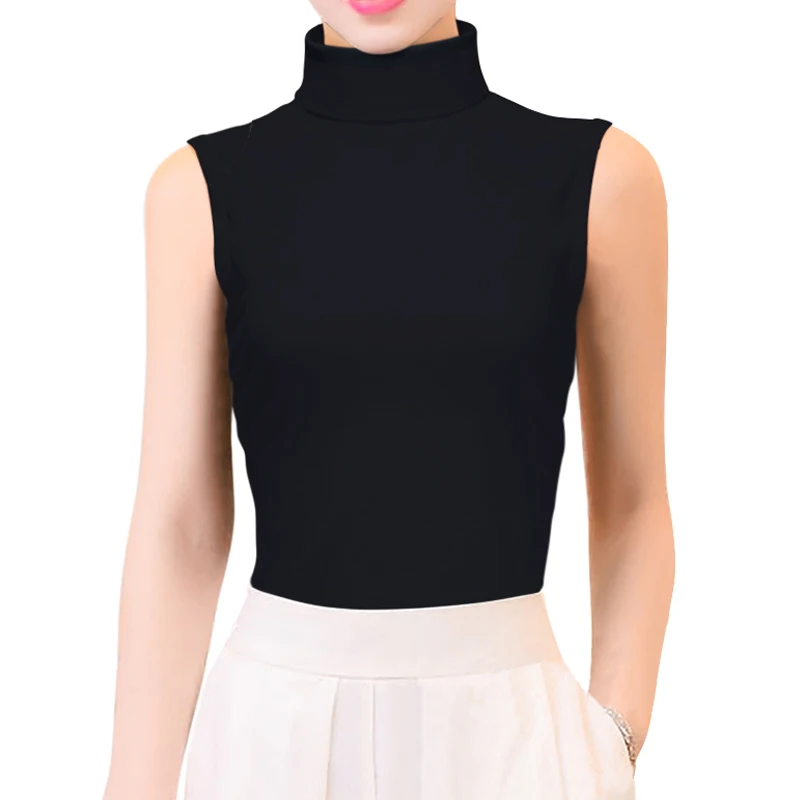 Женская майка с ложным воротником, ребристая Черная майка без рукавов с высоким воротником для фитнеса, элегантная майка-топ размера плюс, 2560A