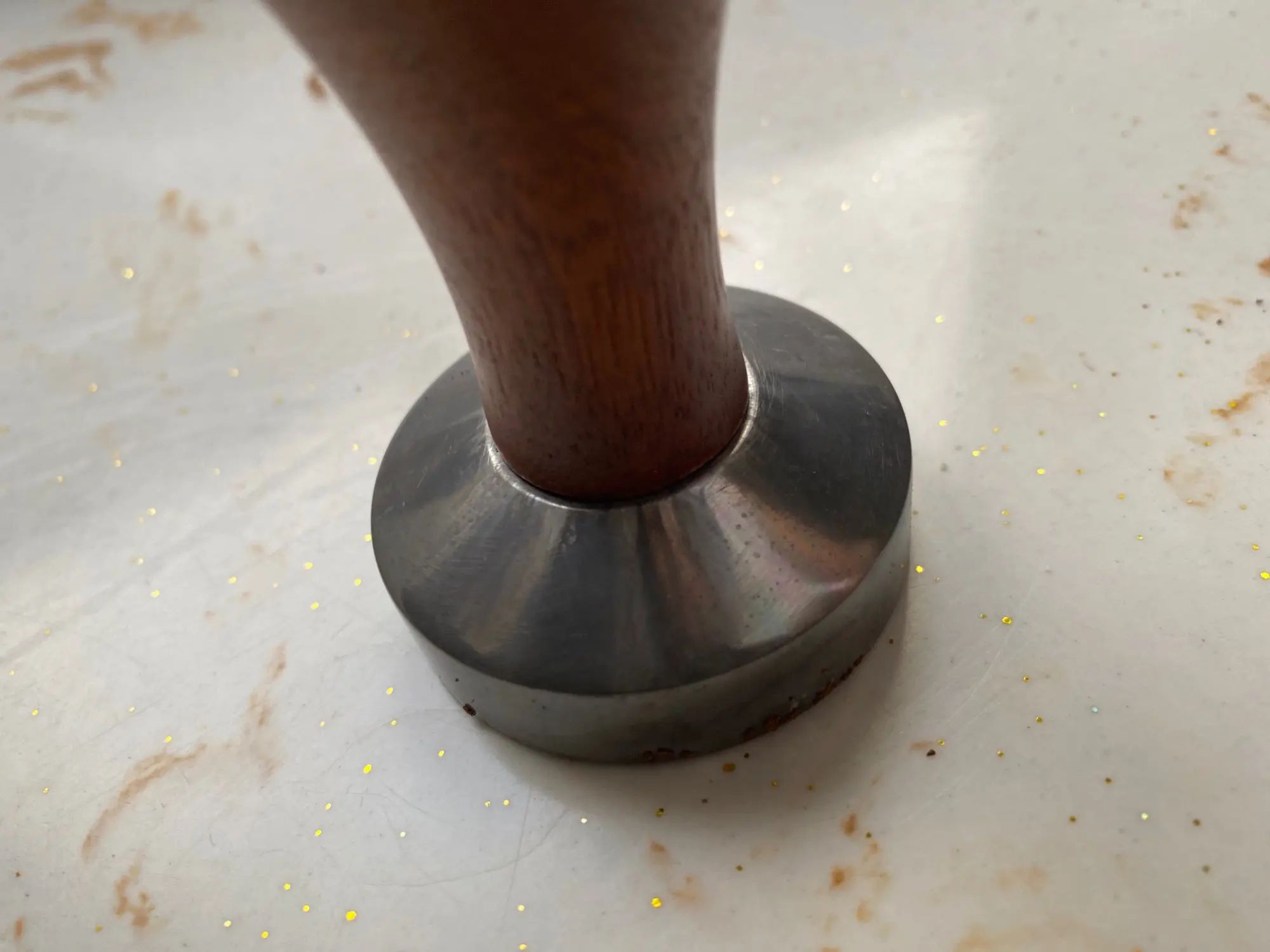 Вес 124 грамма - легковат ручка - дерево подошва - скорее всего, не пищевая нержавейка а сплав с хромированием в посудомойке точно не стоит мыть - облезет но я - с учетом цены - на большее и не рассчитывал - для замены стандартного пластикового ложкотепмпера пойдет Этим тромбовать таблетку удобнее и проще Хотите круче - покупайте итальянцев по цене половины Вашей бытовой кофеварки - только он Вам ничего особо не улучшит, с учетом качества Вашего кофе и кофемолки. А если у Вас все крутопоефссиональное - то 51 Вам не нужен :-)