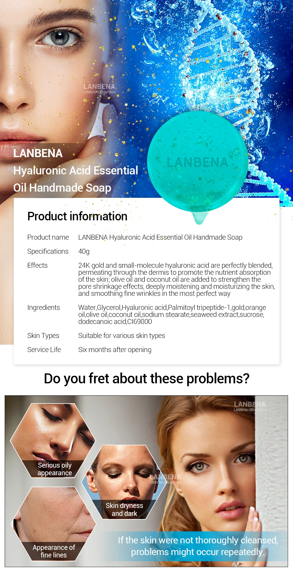 LANBENA мыло ручной работы для отбеливания лица с гиалуроновой кислотой, увлажняющий крем анти-анинг, Очищающий акне Уход восстановление средство против морщин