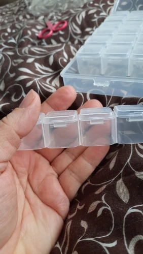 Очень практично для хранения жемчуга или маленьких кнопок, как описано. Быстрая доставка. Я рекомендую продавца, а также продукт.