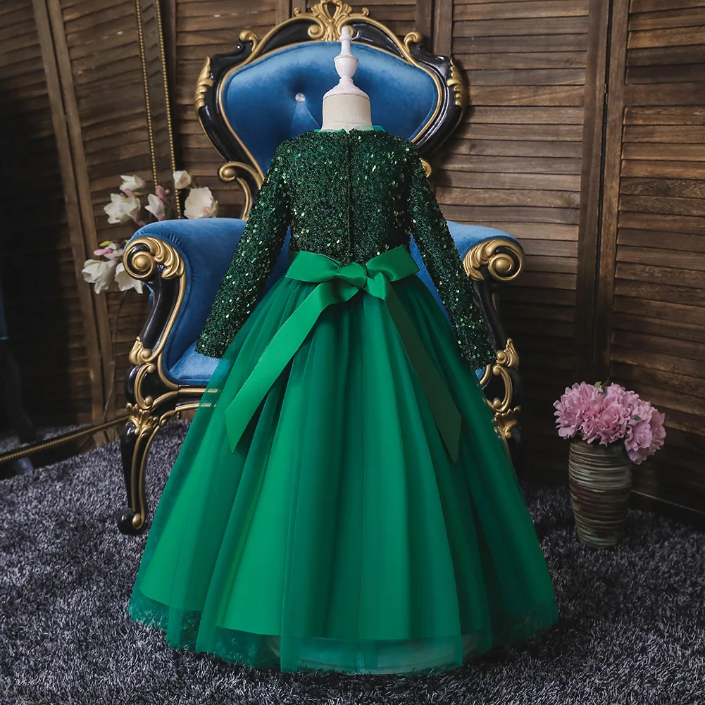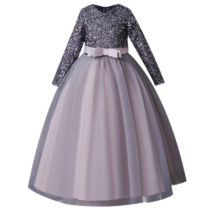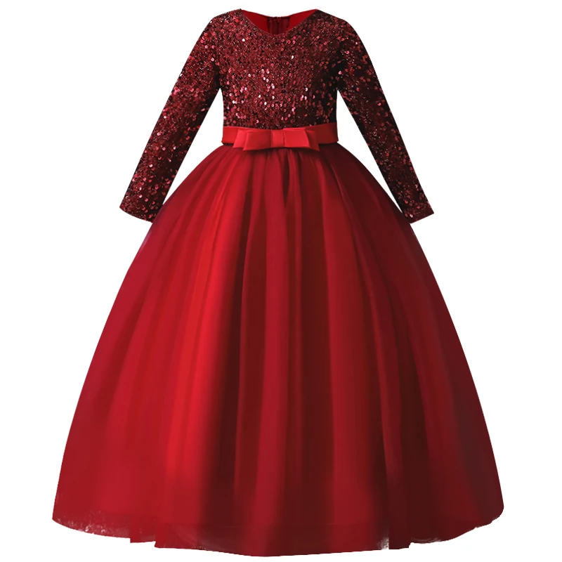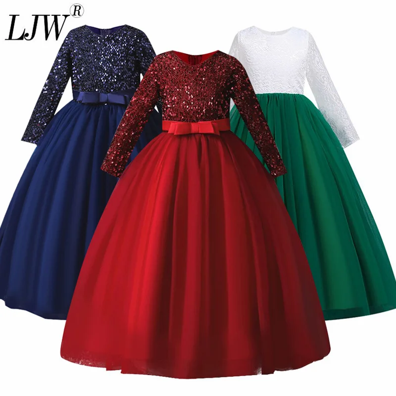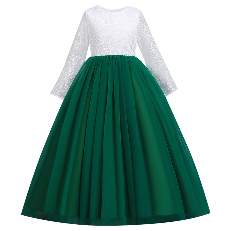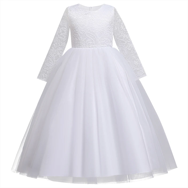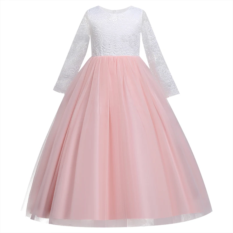 Платье кружевное с длинным рукавом, на возраст 2-14 лет