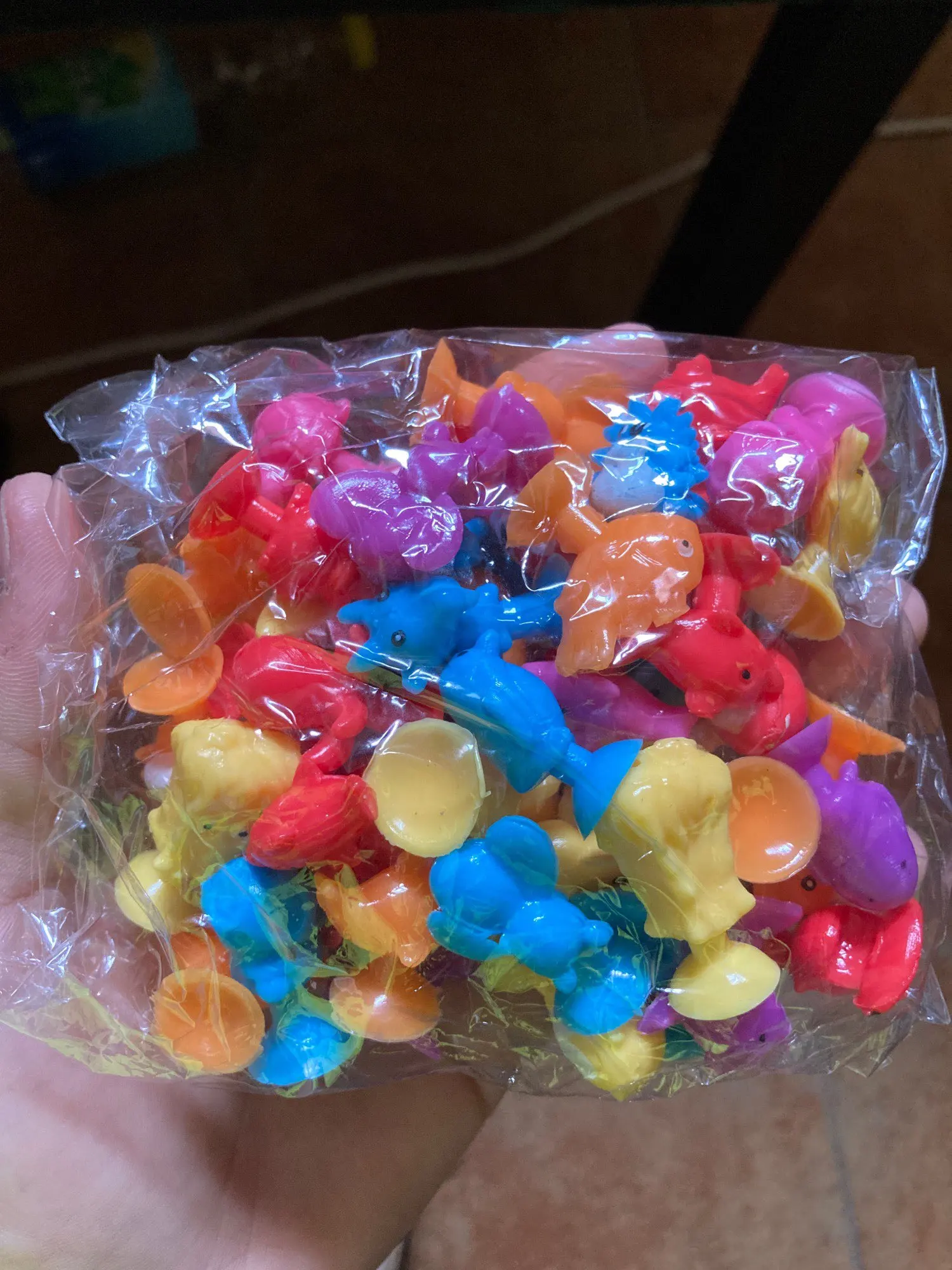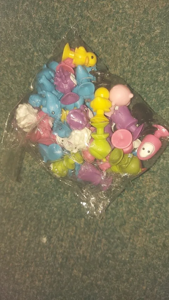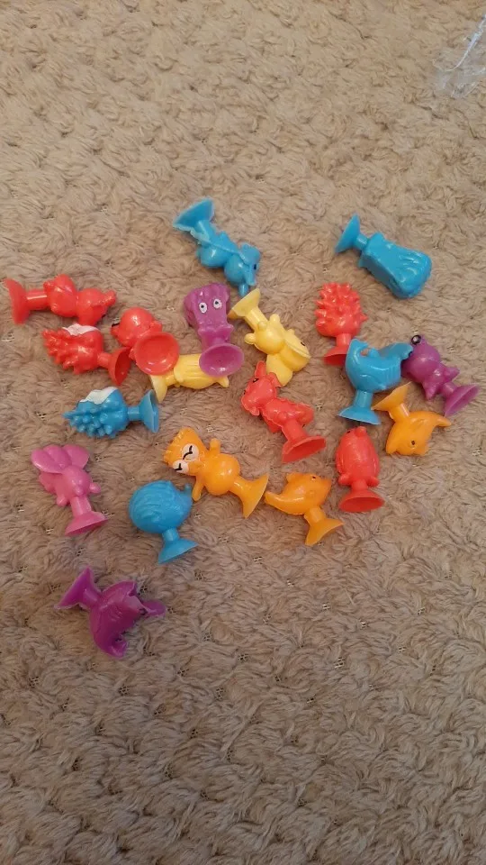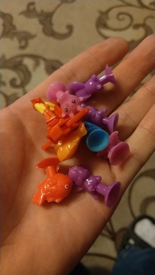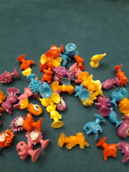 Пришли наши штучки, какие же они уматовые , думала оставить себе пару для настроения, но дочь утащила все играть. Ровно 50 штук, практически без повторок в одном цвете. Есть которые надо немного обрезать и пару, которые устали и лежат;))))). Но это супер находка для нас, рекомендую к покупке и сама буду ещё покупать что то такого плана. Единственное пока не поняла смысл присоски, они не держат, но попробуем в ванной, может нужна вода, тогда дополню отзыв. Но в любом случае к покупке рекомендую, честный продавец и забавные игрушки.