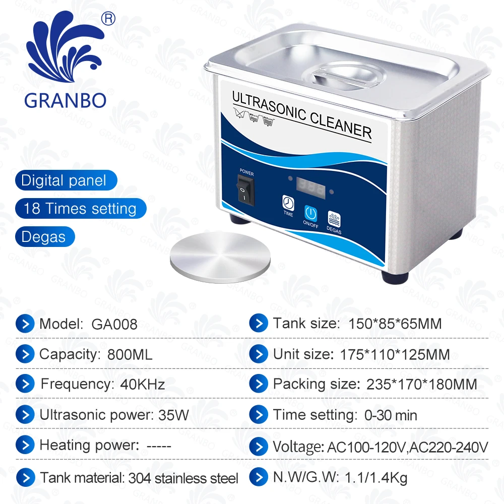 Ультразвуковой очиститель 800 мл 35 Вт из нержавеющей стали для ванны, очков, ювелирных изделий, мойки, часов, колец, протезов, тату, монет