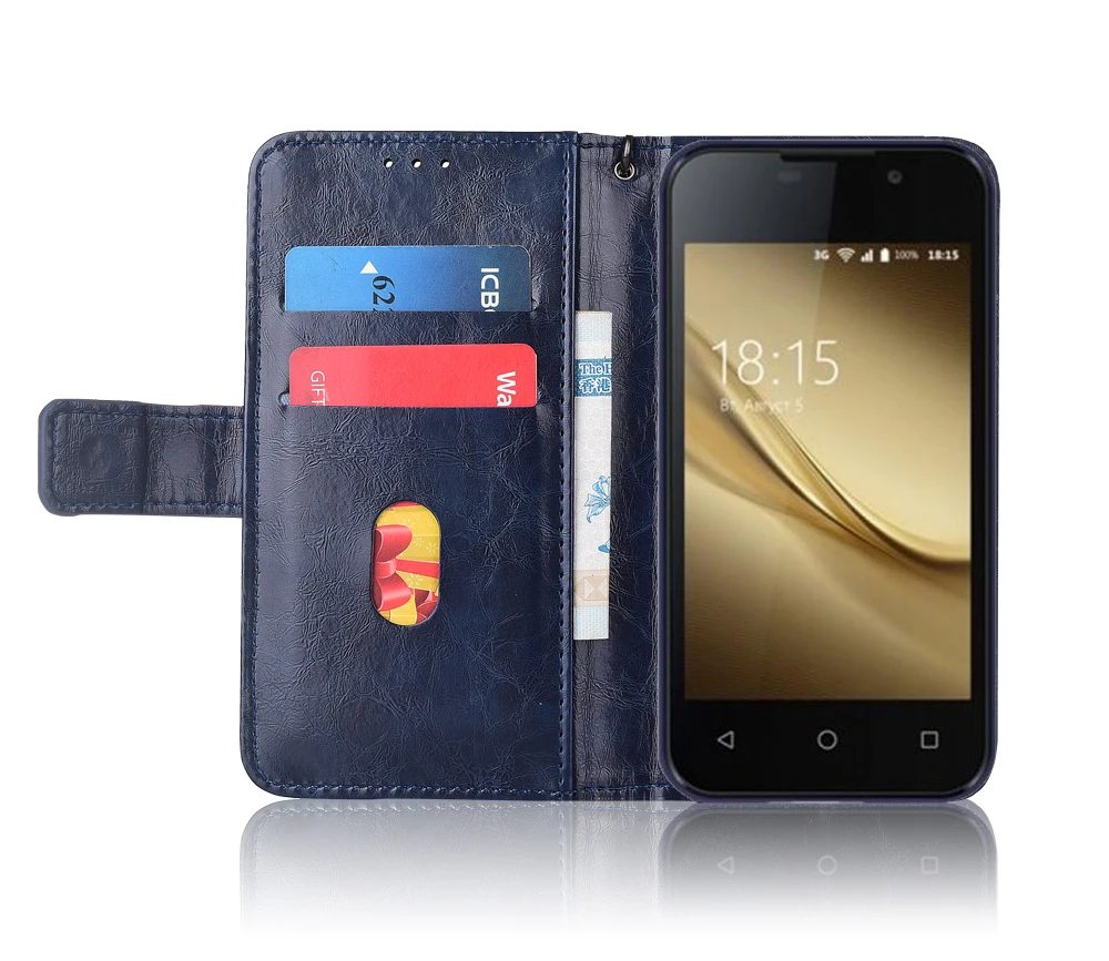 Кожаный чехол-книжка дляBQ BQ-4072 Strike MiniЧехол-кошелек с подставкой и ремешком