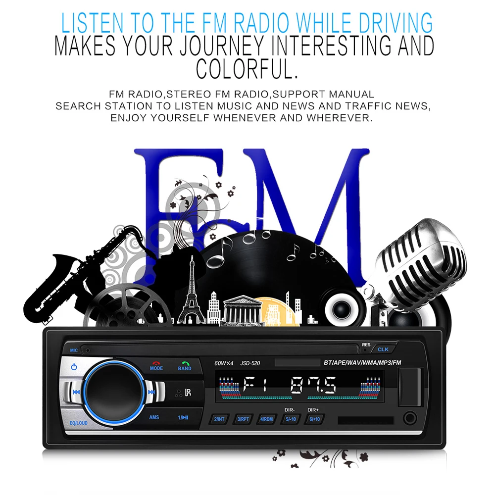 Посылка 1 x JSD - 520 FM-радио, 1 пульт дистанционного управления, 1 x провод, 1 x набор инструментов для установки, 1 x Руководство пользователя