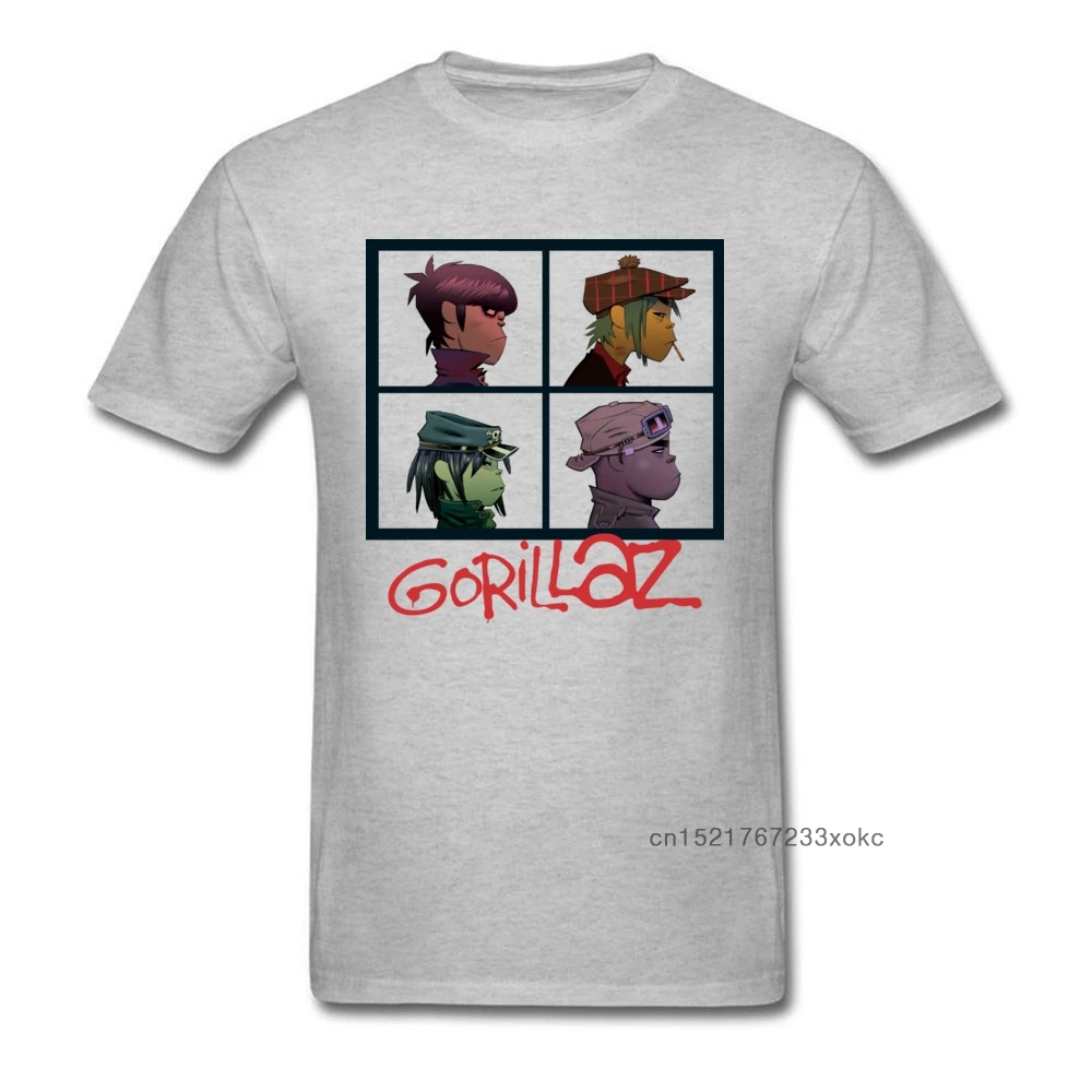 Мужская футболка с аниме Gorillaz, серая хлопковая Футболка с принтом виртуальной группы, забавная уличная одежда в стиле аниме
