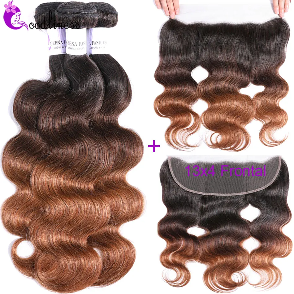 Пряди омбре с фронтальной оправой 1B 4 30 предварительно окрашенные уха к уху Кружева Фронтальная застежка с пряди Remy перуанская волна тела с фронтальной