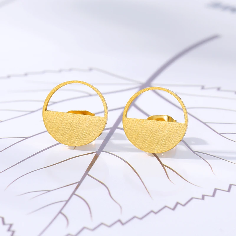 Простые круглые серьги из нержавеющей стали для женщин, Модная бижутерия, вырезанные полукруглые серьги-гвоздики, детские подарки